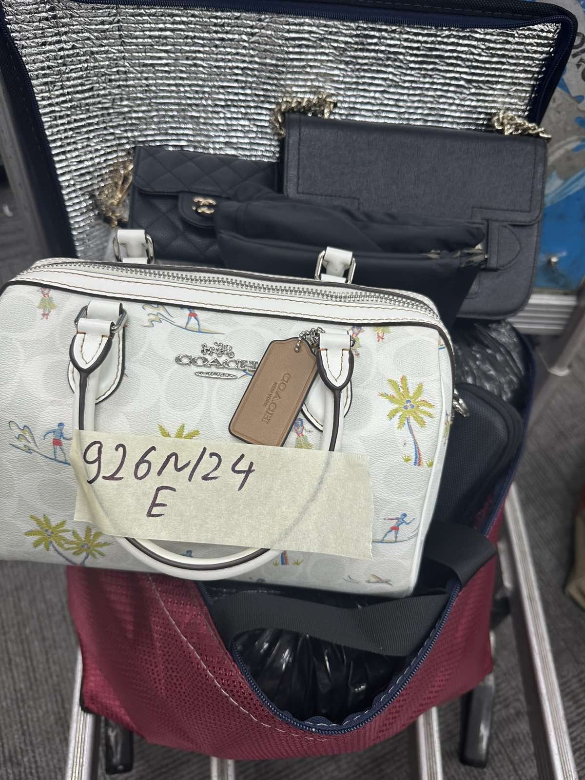 Ngày tiếp nhận: 14/6/2024 Mã hồ sơ: 926N2024E Mô tả: 01 túi xốp màu đỏ bên trong có 01 túi xách màu đen có chữ FURLA, quai xích bên trong có một hộp mắt kính gọng nhựa màu đen có chữ VERSACE MOD 3249, mắt kính trong, hộp kính màu xanh navy, 01 hộp đựng mắt kính màu nâu bên trong có 02 mắt kính mắt, 01 mắt kính gọng đỏ xanh mắt đen, 01 mắt kính gọng nâu có chữ Justjeans mắt nâu, 01 túi xách màu trắng có chữ COACH, 01 túi đeo nhỏ màu đen có chữ CHANEL dây xích sắt, cùng một số quần áo, giày dép đã qua sử dụng. |