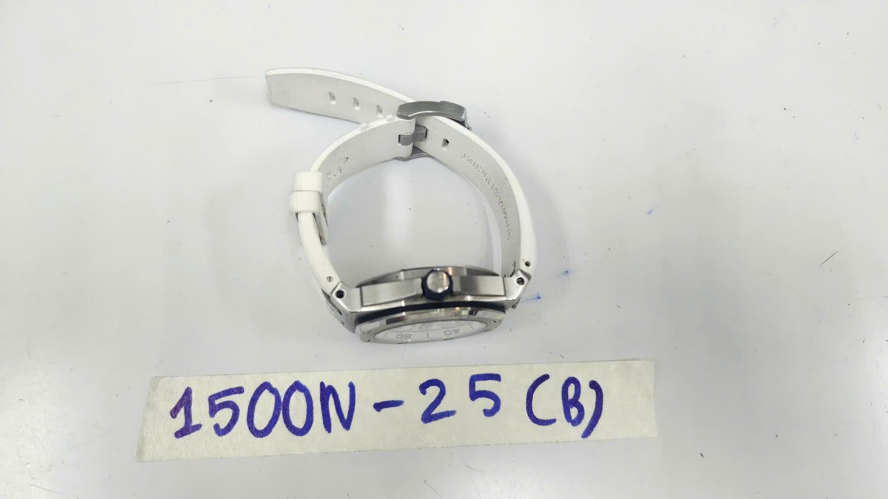 Ngày tiếp nhận: 14/8/2025 Mã hồ sơ: 1500N2025B Mô tả: 01 đồng hồ kim loại màu bạc trên mặt có chữ AUDEMARS PIGUET, dây đeo màu trắng. |