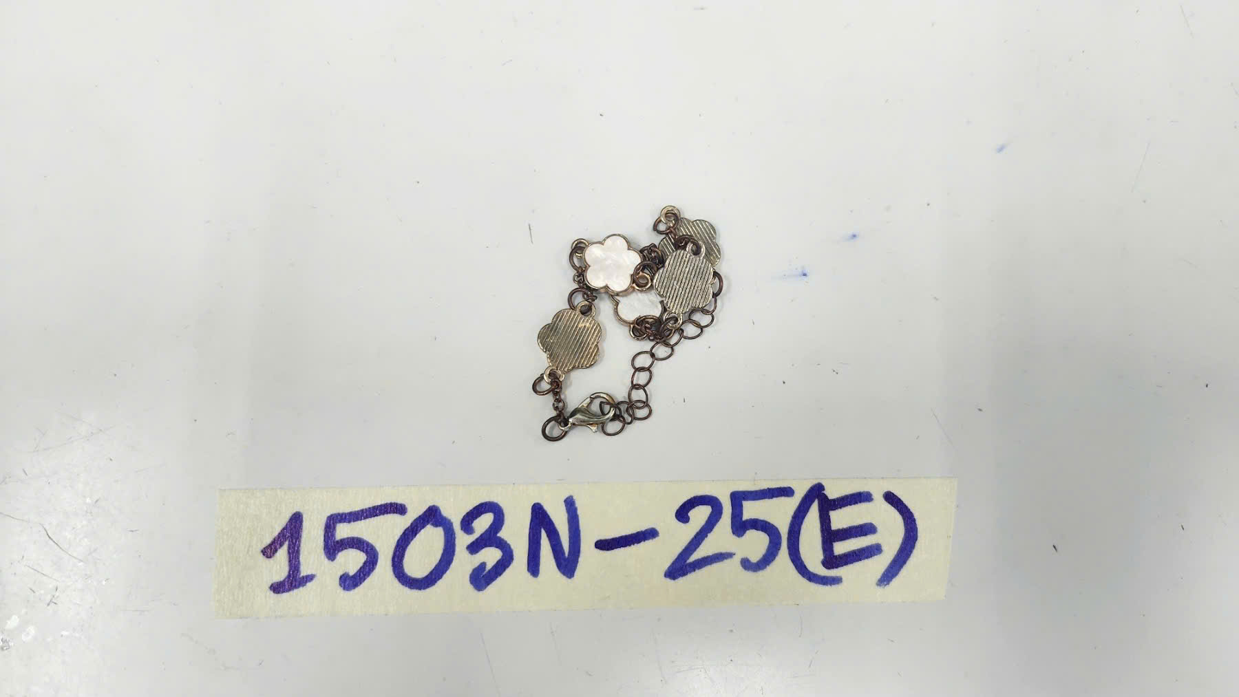 Ngày tiếp nhận: 14/8/2025 Mã hồ sơ: 1503N2025E Mô tả: 01 vòng tay màu vàng có họa tiết hình bông hoa màu trắng. |