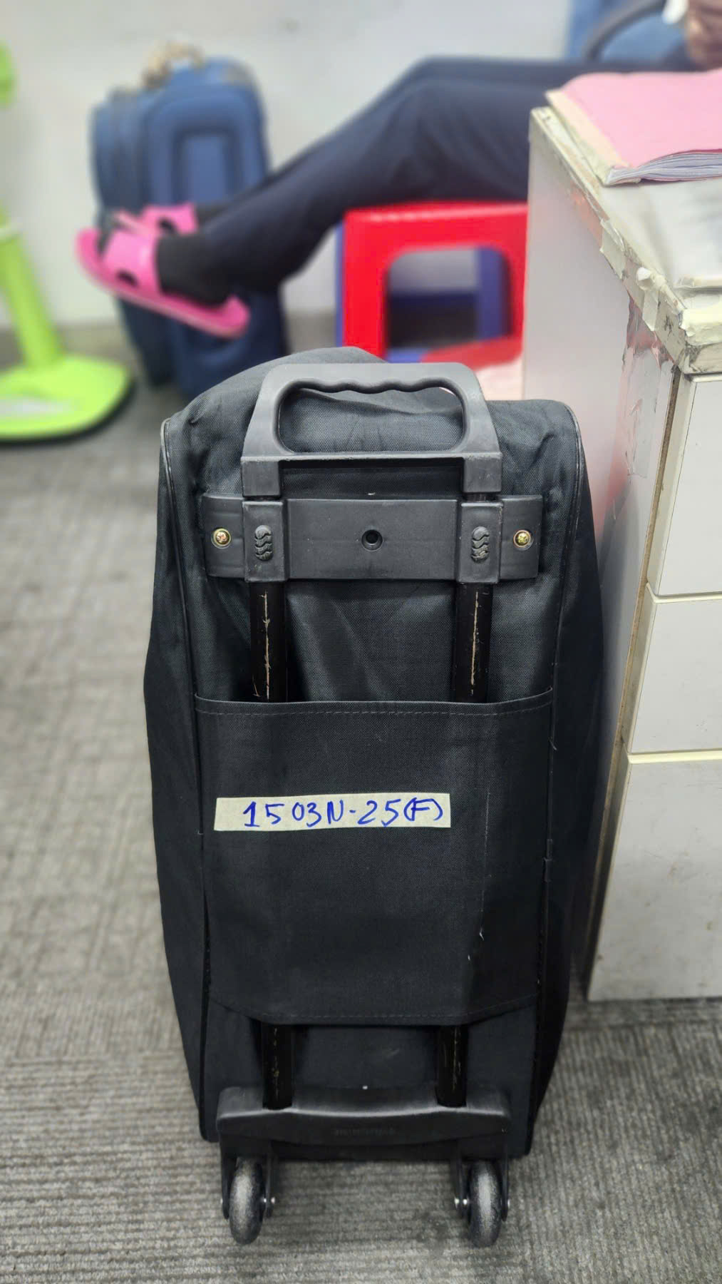 Ngày tiếp nhận: 14/8/2025 Mã hồ sơ: 1503N2025F Mô tả: 01 túi màu đen không rõ hiệu, tag hành lý hãng VIETJET bên trong: quần áo và đồ dùng cá nhân. |