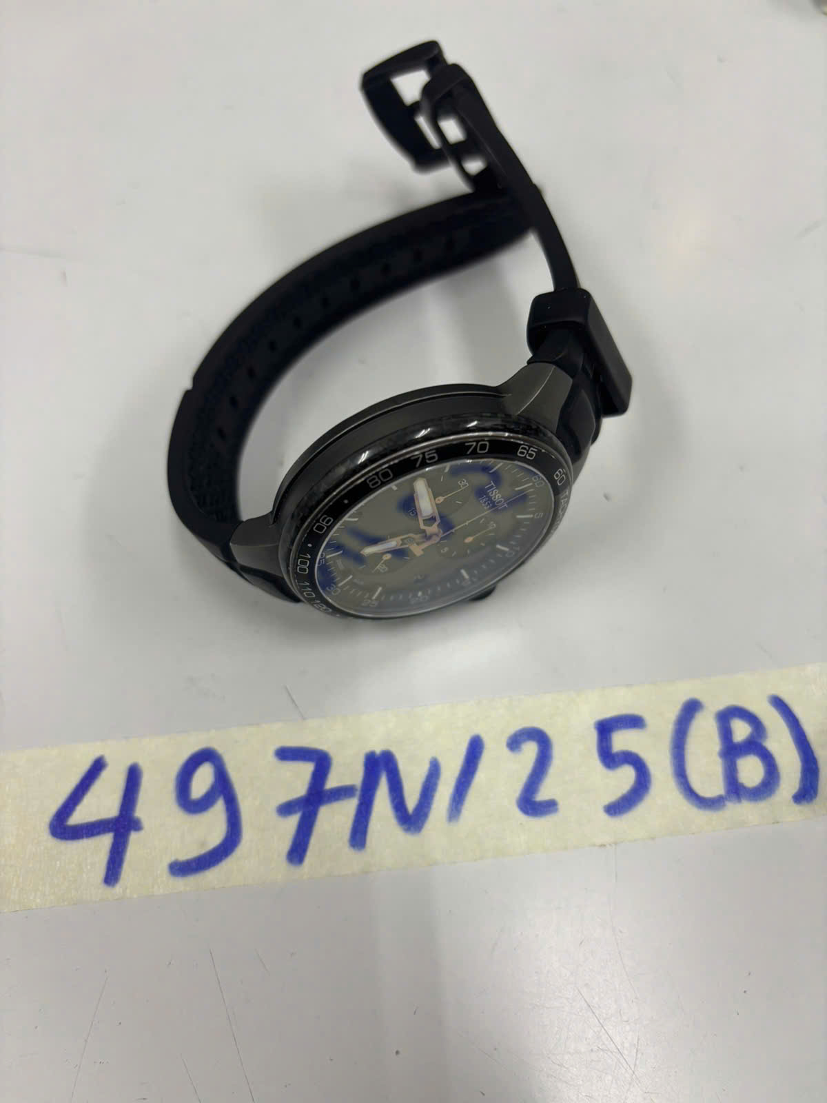 Ngày tiếp nhận: 14/03/2025 Mã hồ sơ: 497N2025B Mô tả: 01 đồng hồ kim loaại dây cao su mặt tròn chữ Tissot. |