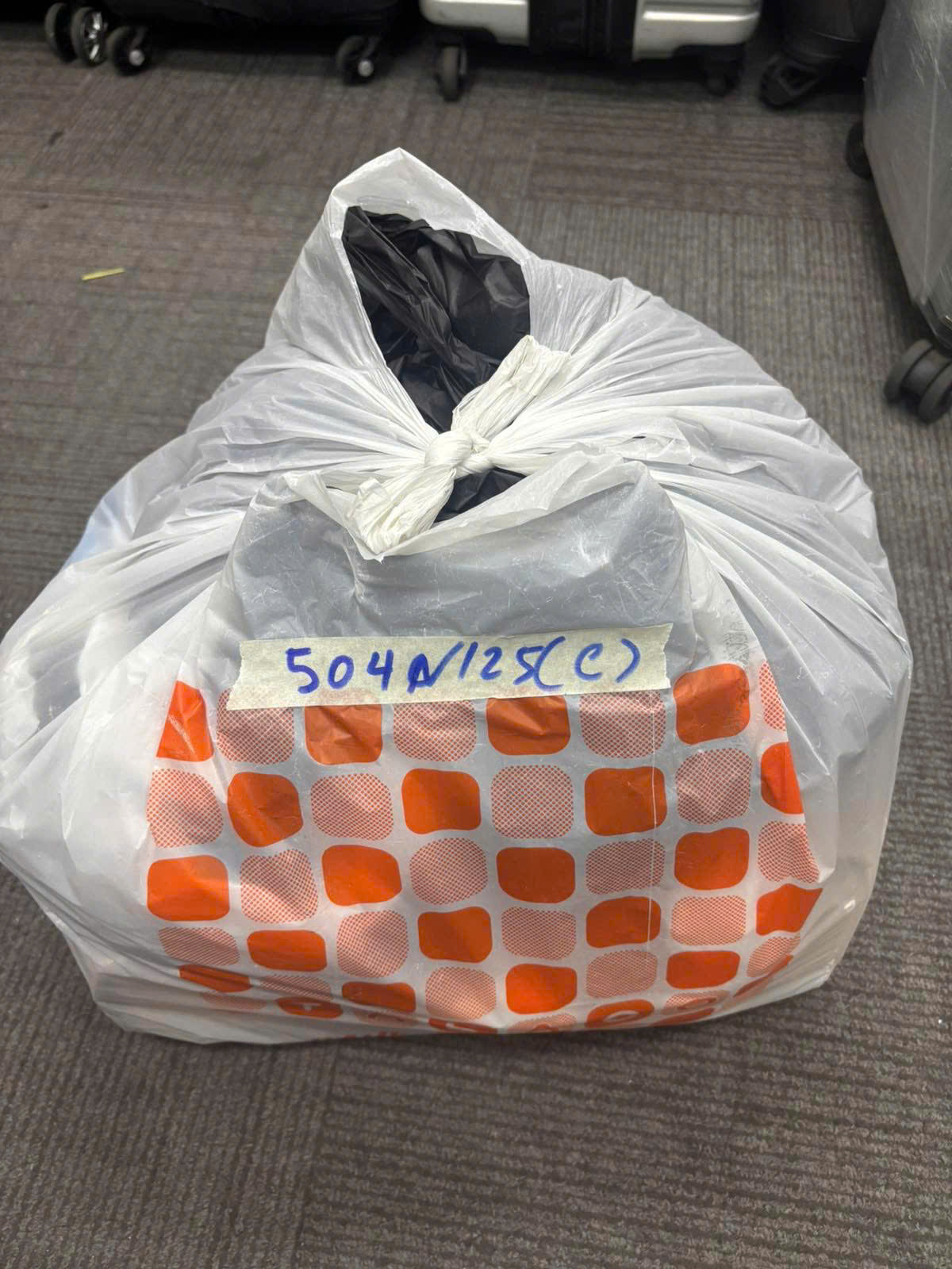 Ngày tiếp nhận: 17/03/2025 Mã hồ sơ: 504N2025C Mô tả: 01 túi ni-lon màu trắng, bên trong gồm: 01 đôi dép, 01 quần, 04 túi xách. |