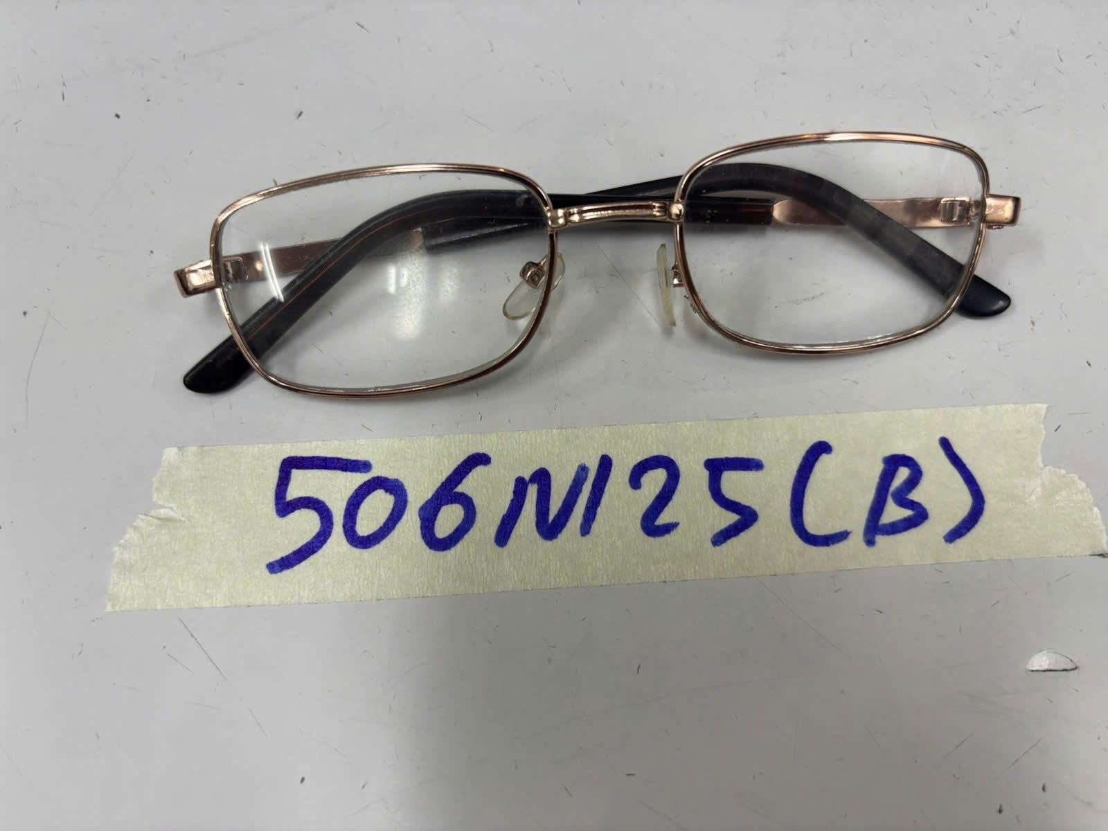 Ngày tiếp nhận: 17/03/2025 Mã hồ sơ: 506N2025B Mô tả: 01 kính cận gọng vàng logo chữ "GUESS". |
