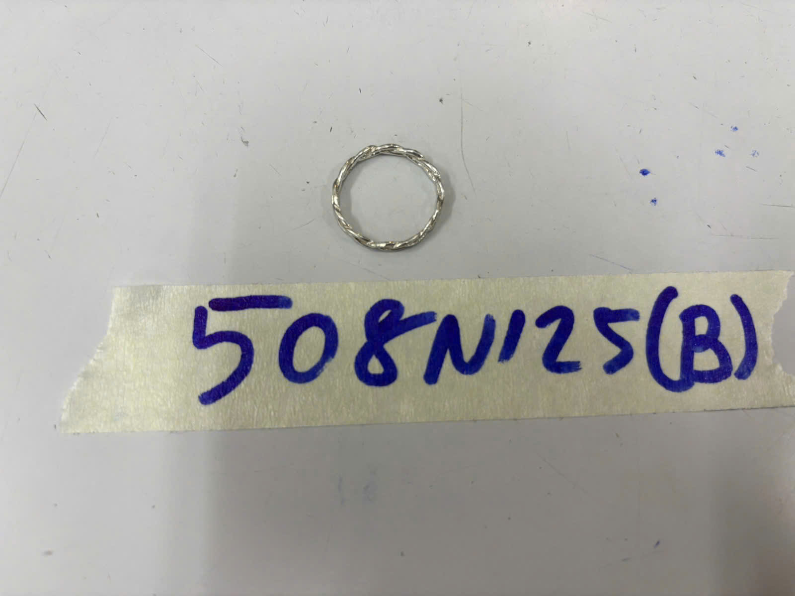Ngày tiếp nhận: 17/03/2025 Mã hồ sơ: 508N2025B Mô tả: 01 nhẫn kim loại màu bạc không rõ hiệu. |