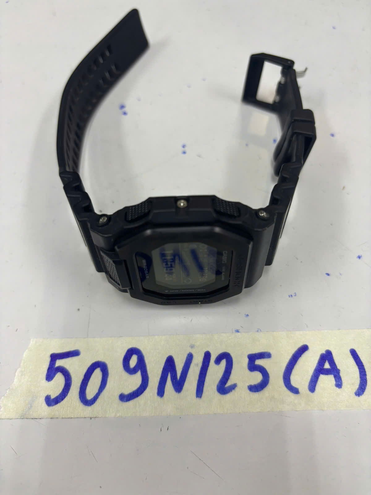 Ngày tiếp nhận: 17/03/2025 Mã hồ sơ: 509N2025A Mô tả: 01 đồng hồ màu đen mặt hình vuông có chữ CASIO, dây cao su màu đen. |