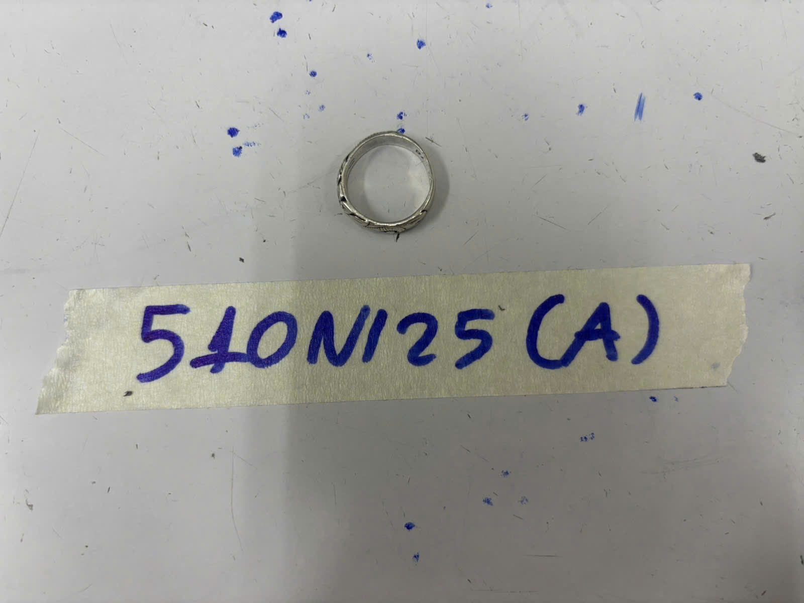 Ngày tiếp nhận: 17/03/2025 Mã hồ sơ: 510N2025A Mô tả: 01 nhẫn kim loại mặt tròn màu bạc không rõ hiệu bên trong nhẫn có số 2010-12-18. |