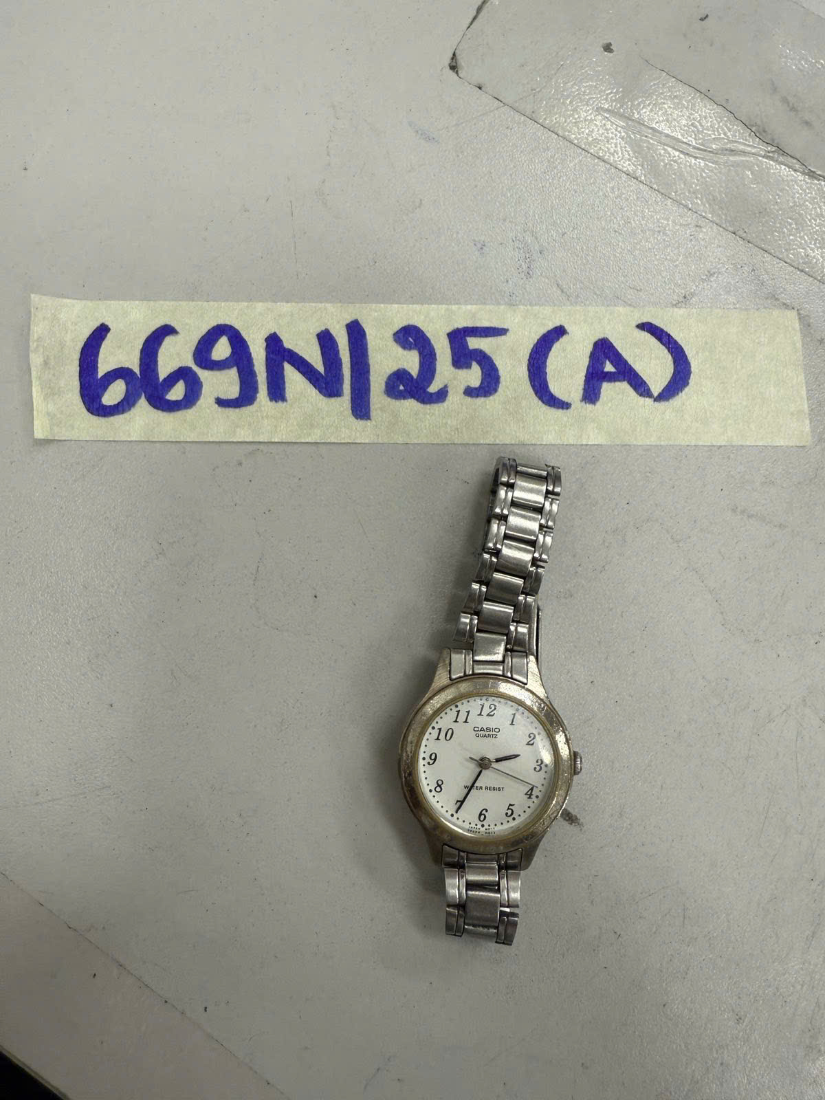 Ngày tiếp nhận: 14/4/2025 Mã hồ sơ: 669N2025A Mô tả: 01 Đồng hồ đeo tay dây kim loại màu vàng, mặt đồng hồ hình tròn có chữ “CASIO QUARTZ” (đã qua sử dụng). |