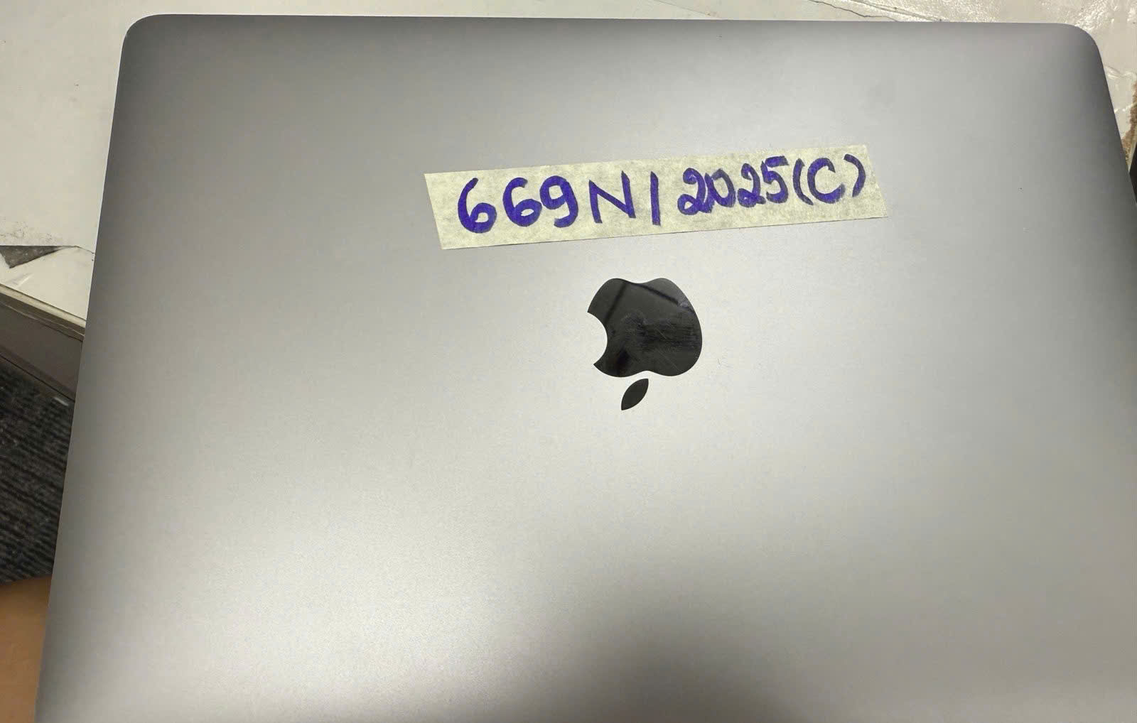 Ngày tiếp nhận: 14/4/2025 Mã hồ sơ: 669N2025C Mô tả: 01 máy tính xách tay màu xám, mặt sau có dòng chữ “DESIGNED BY APPLE IN CALIFORNIA – MODEL A1920 – SERIAL C02X70T6KPH7” (đã qua sử dụng). |