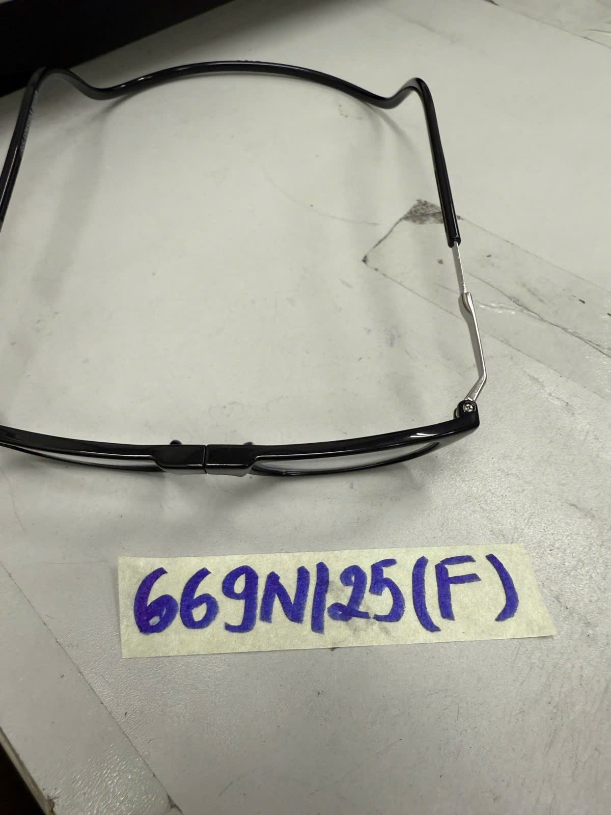 Ngày tiếp nhận: 14/4/2025 Mã hồ sơ: 669N2025F Mô tả: 01 mắt kính nhựa màu đen chữ “CLIC” (đã qua sử dụng). |