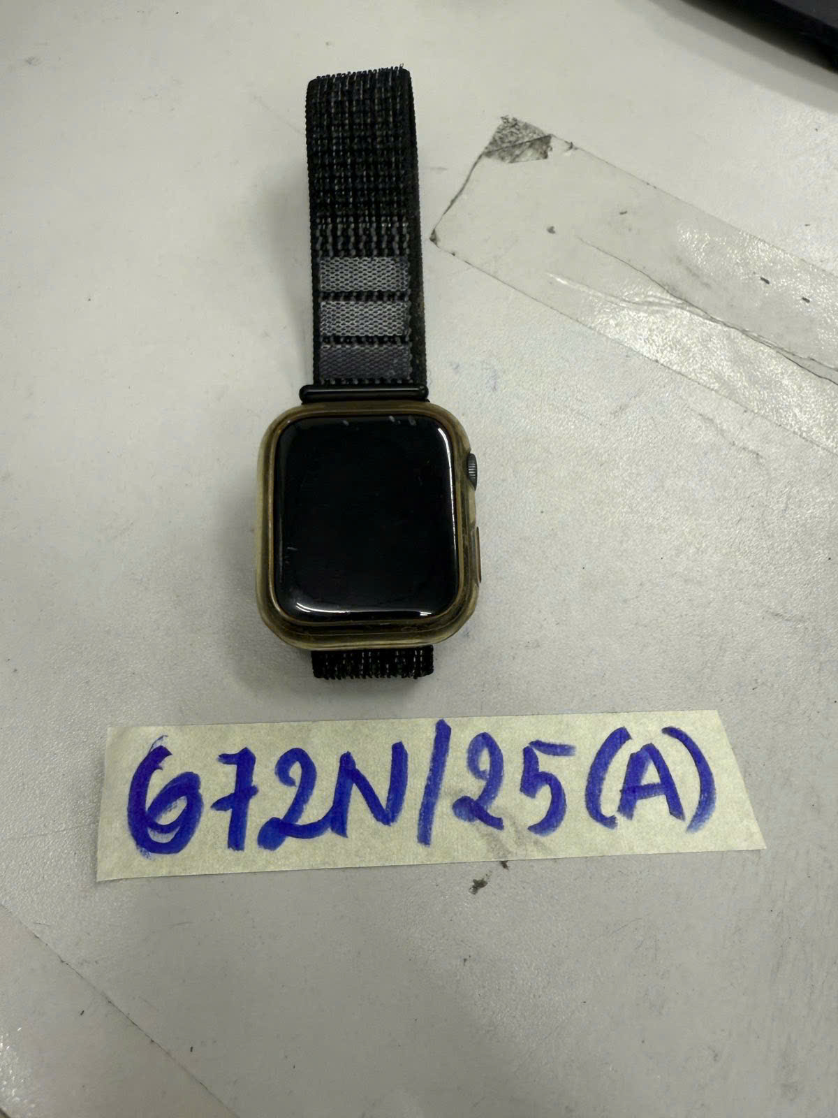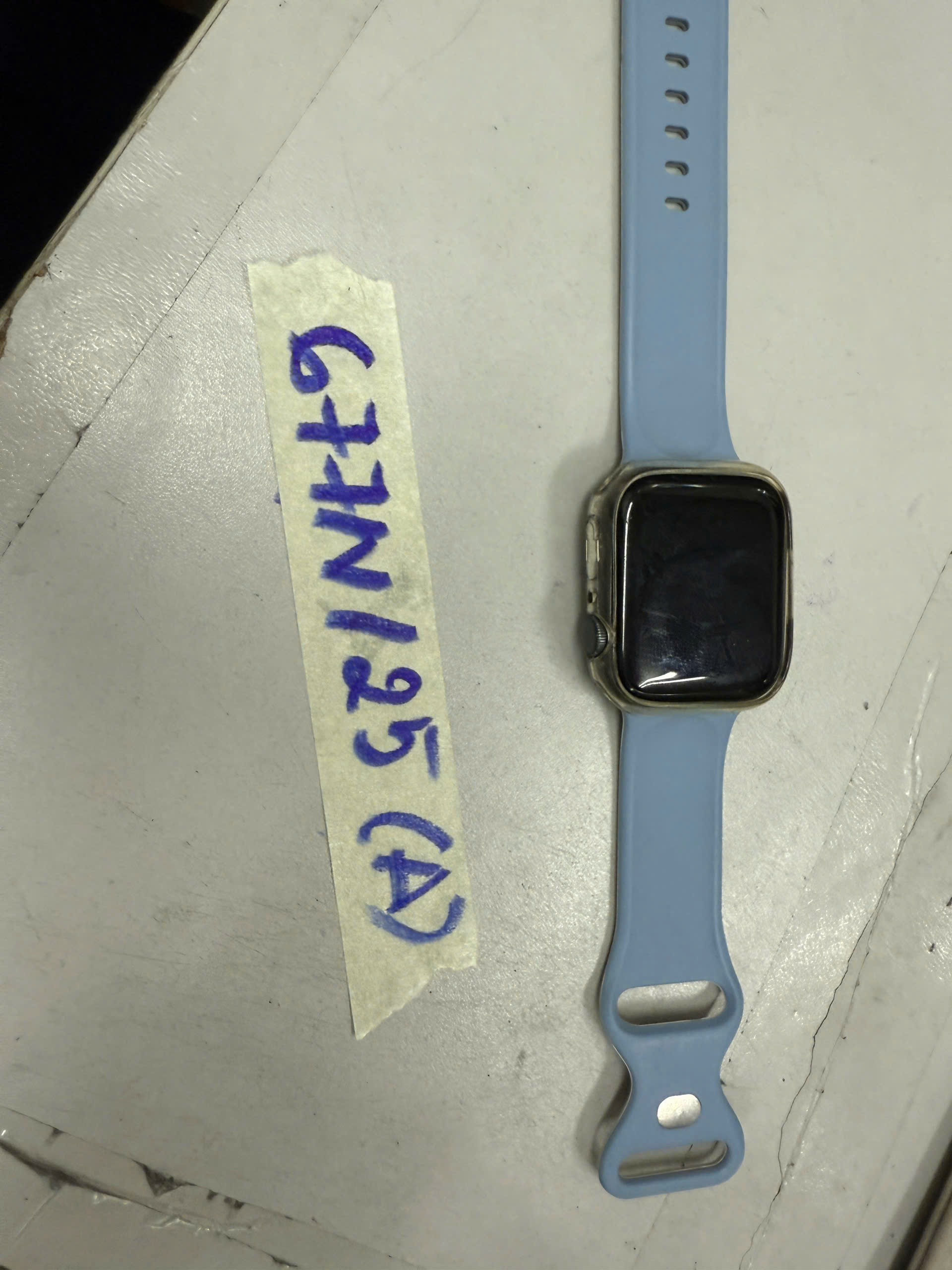 Ngày tiếp nhận: 14/4/2025 Mã hồ sơ: 677N2025A Mô tả: 01 đồng hồ Apple watch mặt màu đen dây cao su xanh da trời. |