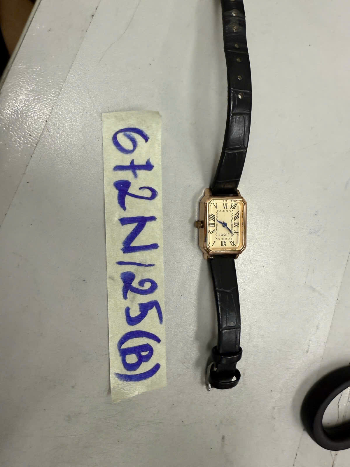 Ngày tiếp nhận: 14/4/2025 Mã hồ sơ: 672N2025B Mô tả: 01 Đồng hồ hiệu JUSMI mặt chữ nhật dây da màu đen. |