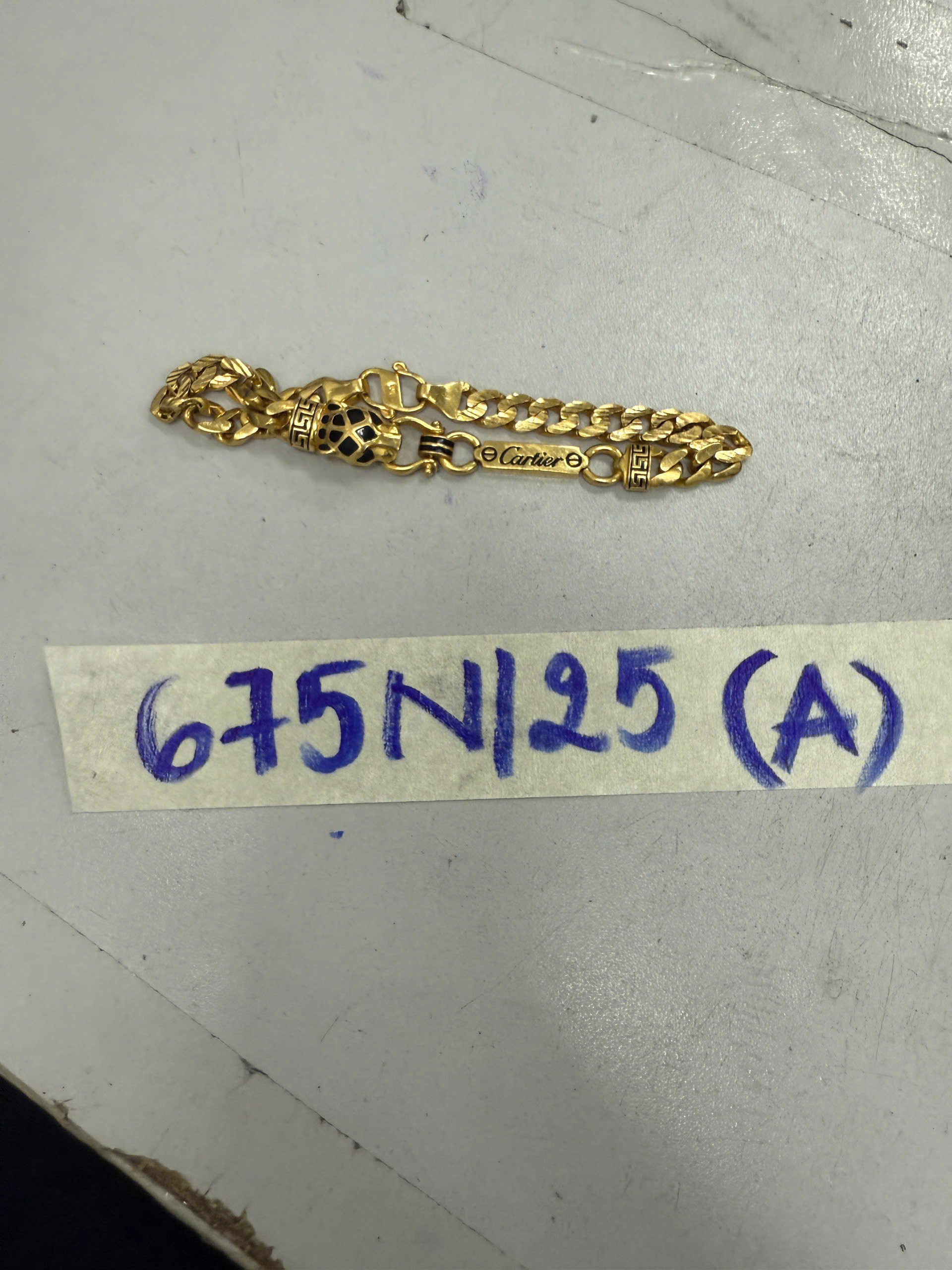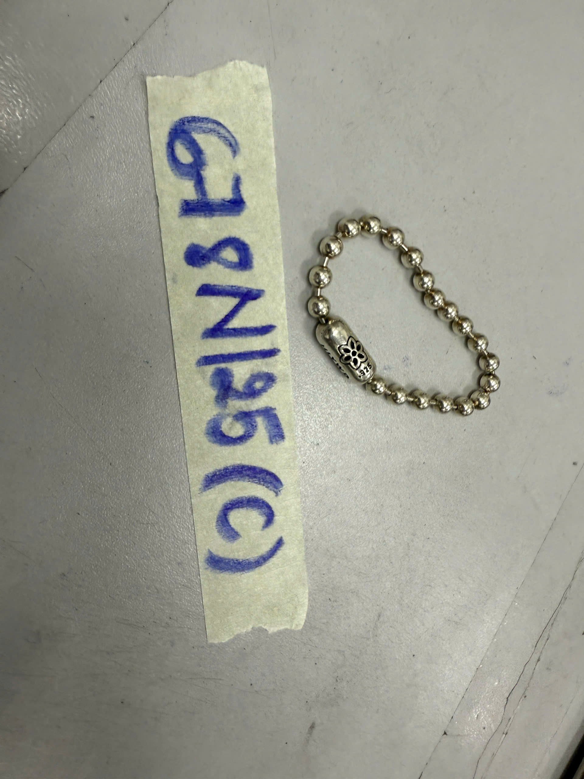 Ngày tiếp nhận: 14/4/2025 Mã hồ sơ: 678N2025C Mô tả: 01 vòng lắc tay kim loại màu trắng, có chữ “HLYWD/.925”. |