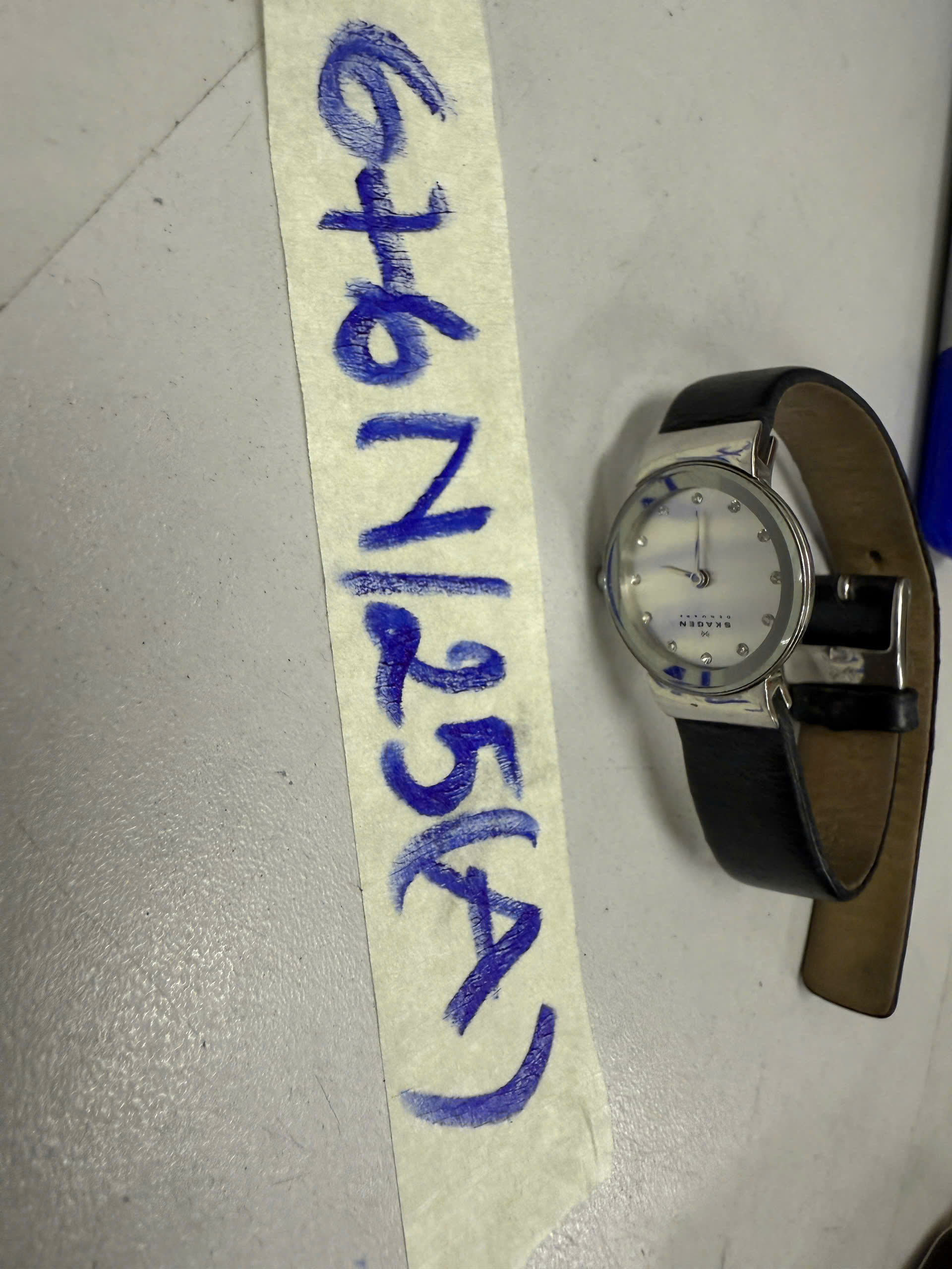 Ngày tiếp nhận: 14/4/2025 Mã hồ sơ: 676N2025A Mô tả: 01 Đồng hồ đeo mặt tròn “Skagen”, dây da màu đen. |