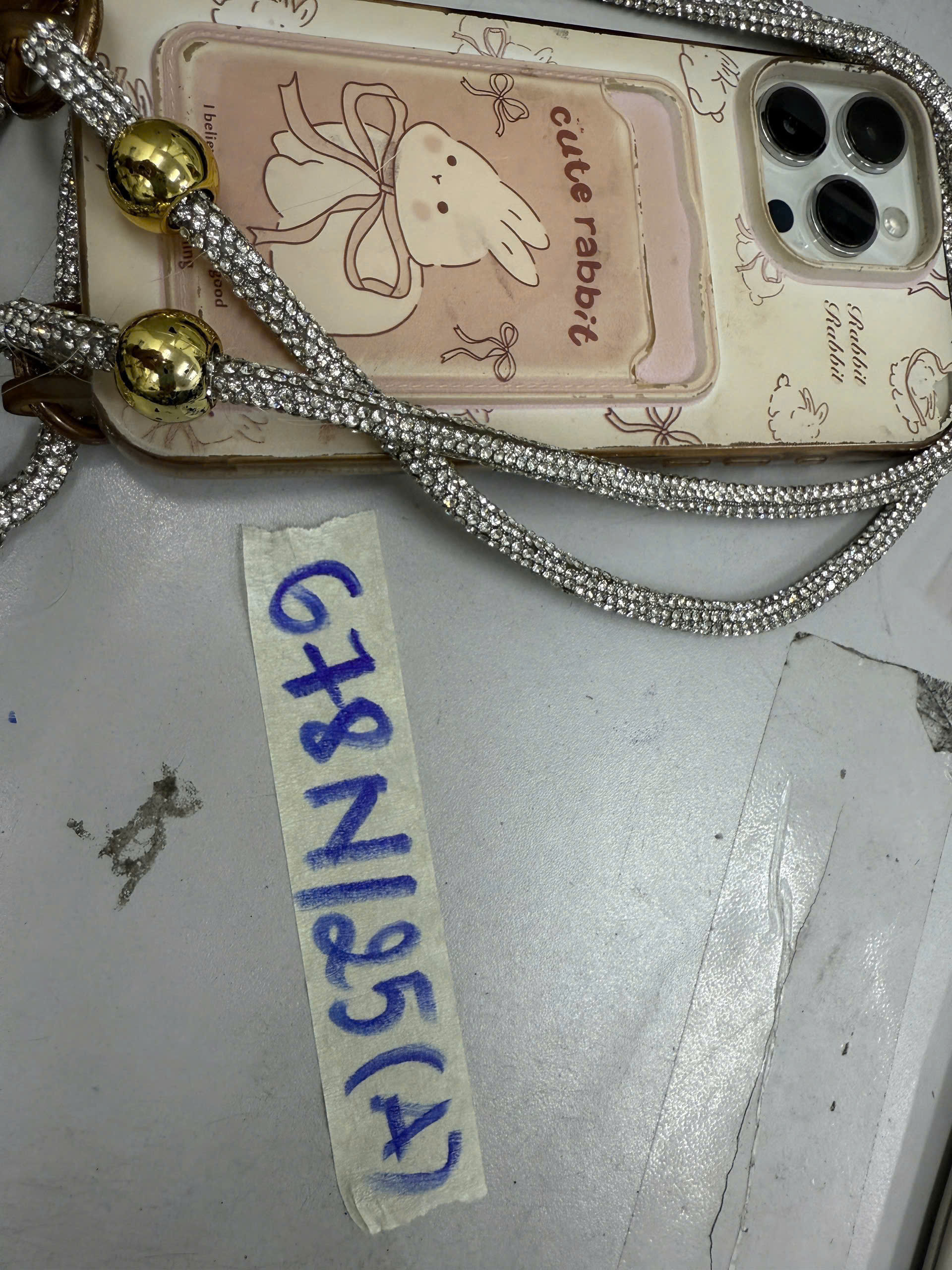 Ngày tiếp nhận: 14/4/2025 Mã hồ sơ: 678N2025A Mô tả: 01 điện thoại Iphone màu trắng, ốp lưng hình con thỏ chữ “cute rabbit”. |
