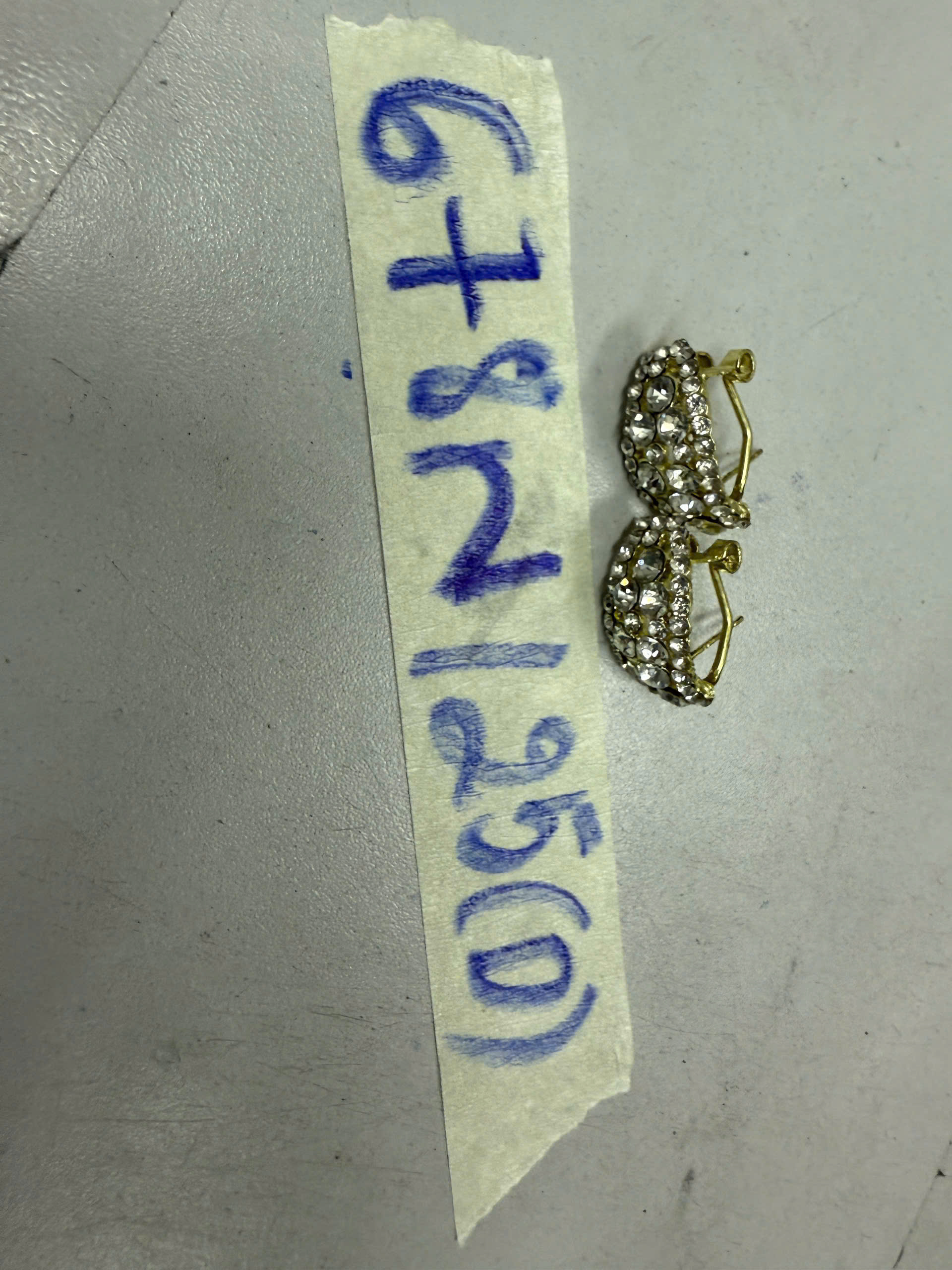 Ngày tiếp nhận: 14/4/2025 Mã hồ sơ: 678N2025D Mô tả: 02 bông tai màu vàng đính đá. |