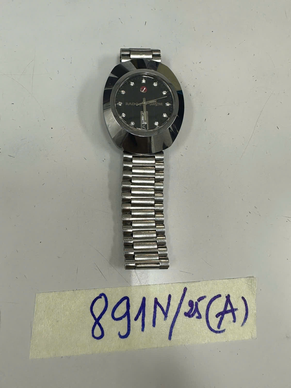 Ngày tiếp nhận: 14/5/2025 Mã hồ sơ: 891N2025A Mô tả: 01 đồng hồ kim loại có chữ "RADO". |