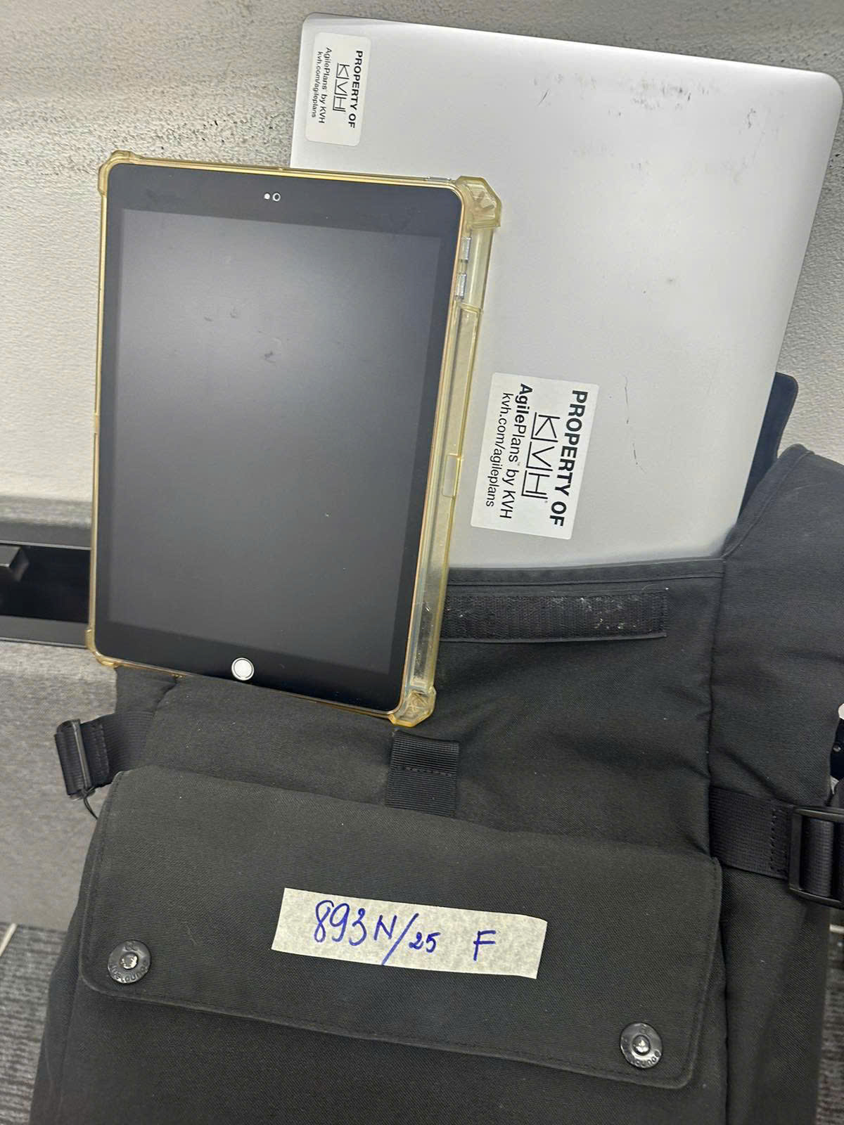 Ngày tiếp nhận: 14/5/2025 Mã hồ sơ: 893N2025F Mô tả: 01 balo màu đen có chữ "BLUE LOUNGE" bên trong gồm: 01 (một) laptop màu xám có logo chữ "LENOVO", 01 (một) máy tính bảng có logo chữ "APPLE IPAD" màu hồng cùng ốp nhựa, bên trong chỉ có một số sách vở. |