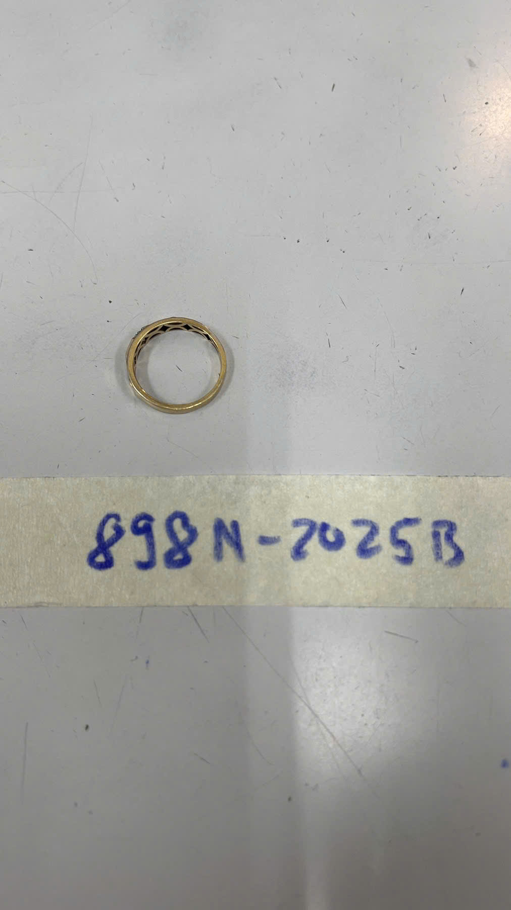 Ngày tiếp nhận: 14/5/2025 Mã hồ sơ: 898N2025B Mô tả: 01 nhẫn kim loại màu vàng có đính đá trong suốt có chữ AU750. |