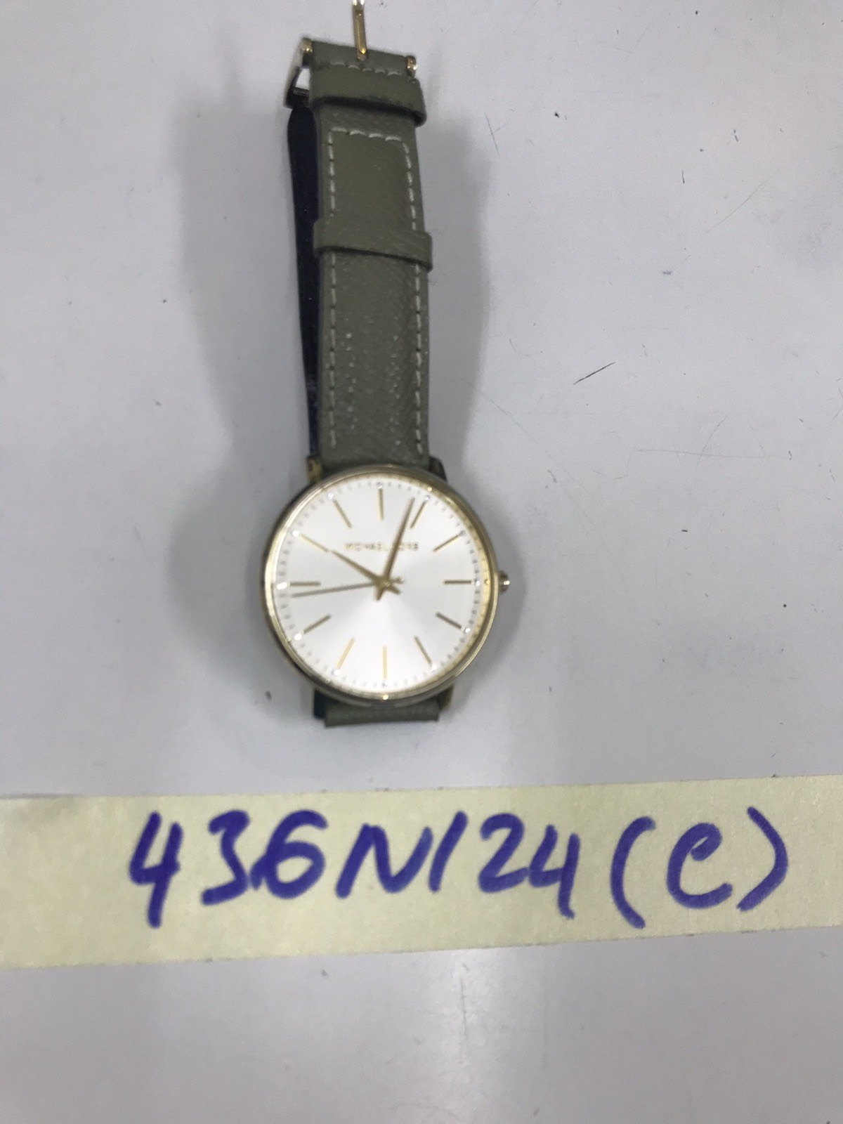 Ngày tiếp nhận: 15/03/2024 loại hình tròn, trên mặt chữ MICHEAL KORS, dây da màu xanh. |
