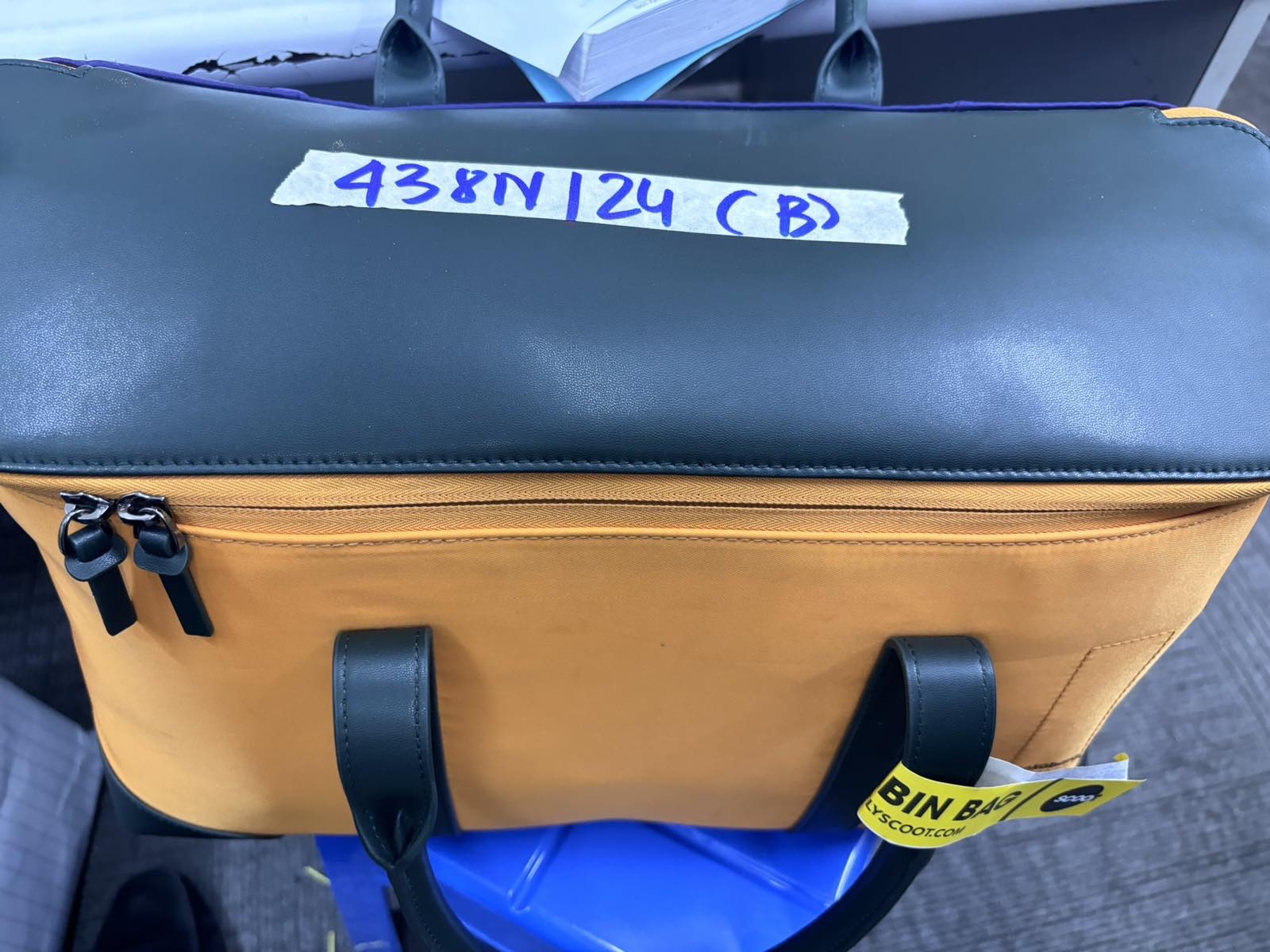 Ngày tiếp nhận: 16/03/2024 màu cam logo MOKOBARA bên trong có:01 túi màu xám Ultimate, 01 gối cổ xám, 01 tượng con mèo, 01 chén gỗ có nắp đậy, 2 túi đeo gỗ, 01 dây thắt lưng vải đen viền trắng, cùng một số đồ cá nhân khác. |