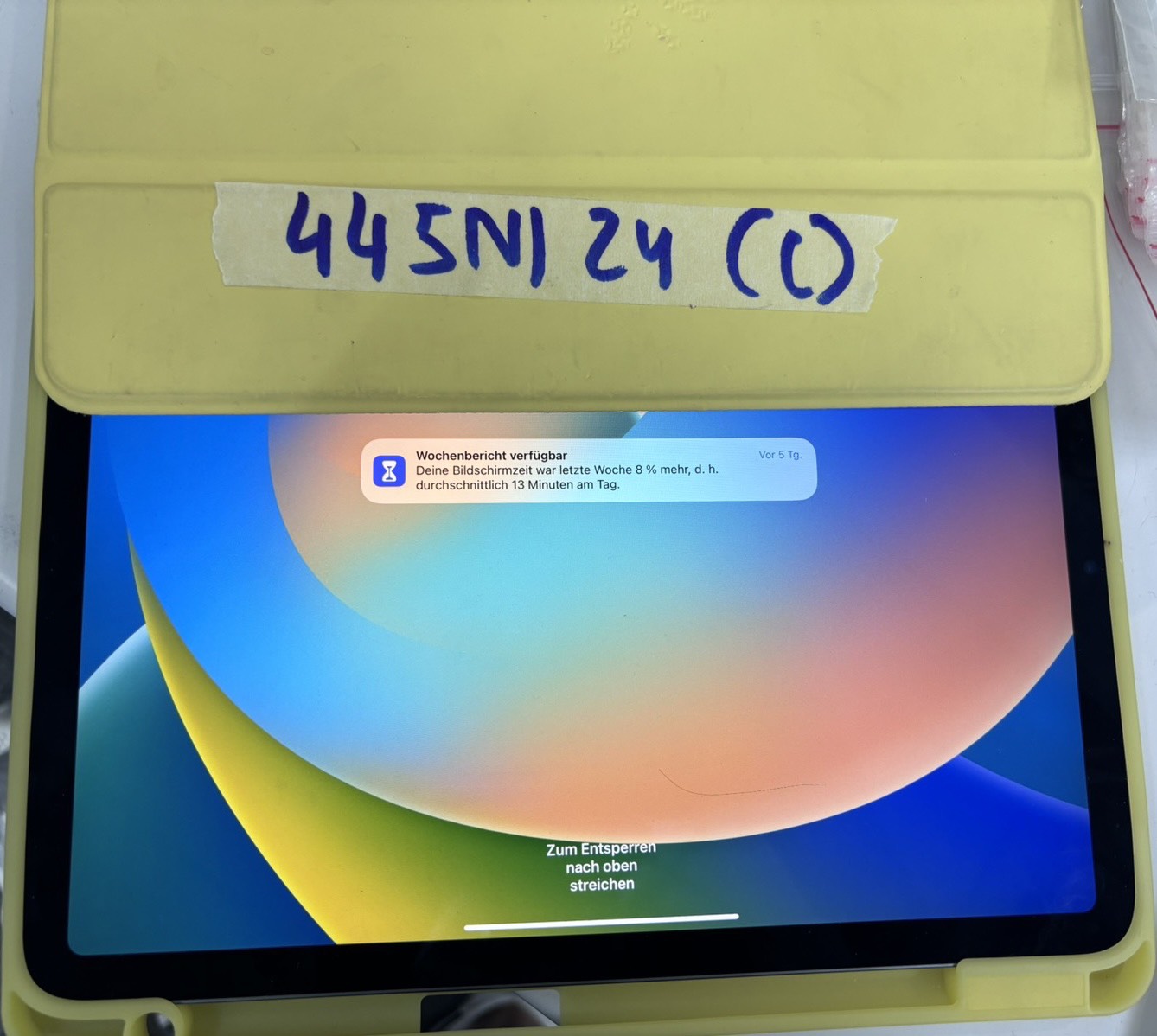Ngày tiếp nhận: 15/03/2024 trước bao da màu đen, mặt sau màu trắng, có vỏ bọc bên ngoài bằng vải màu xanh. |