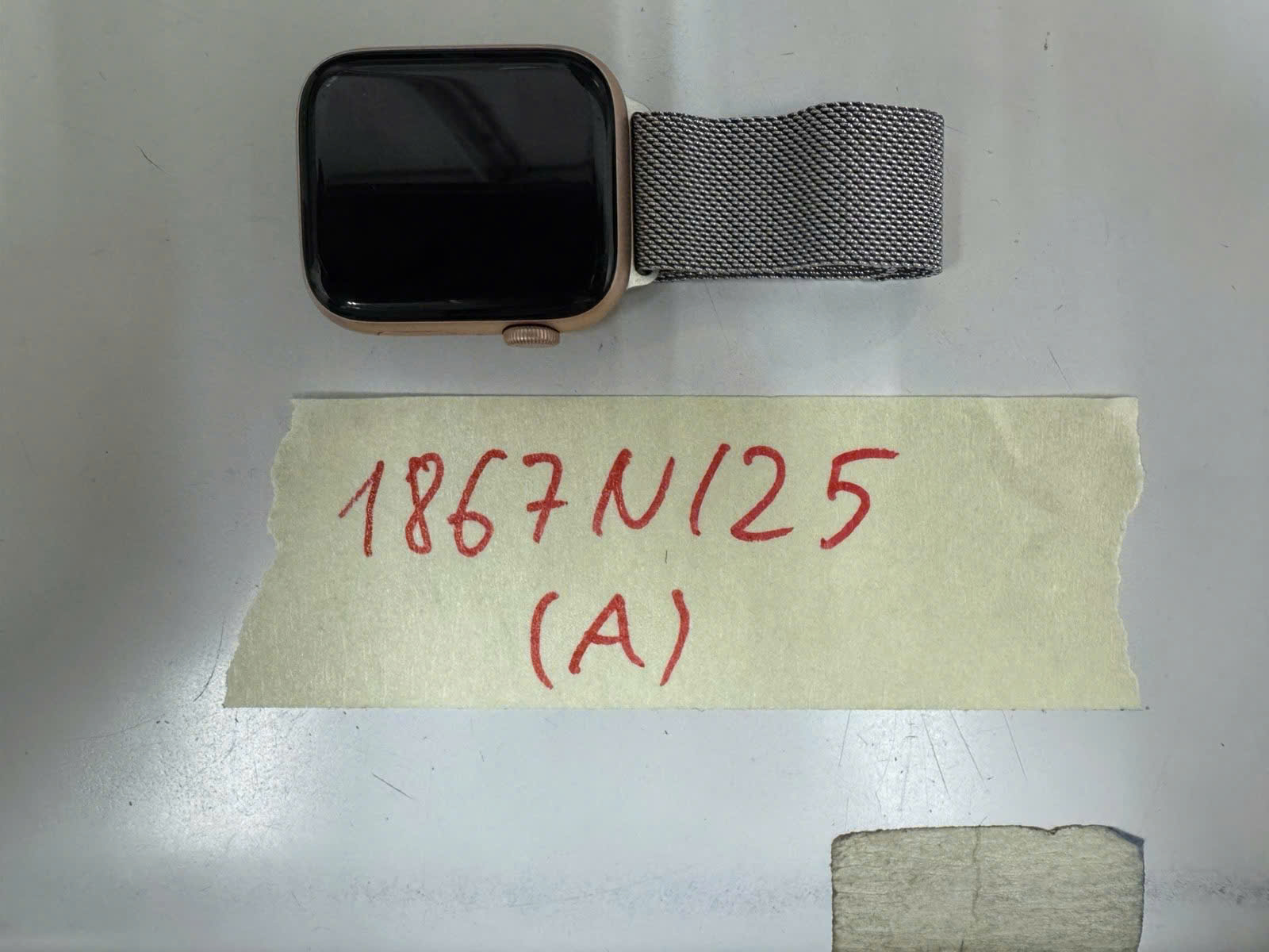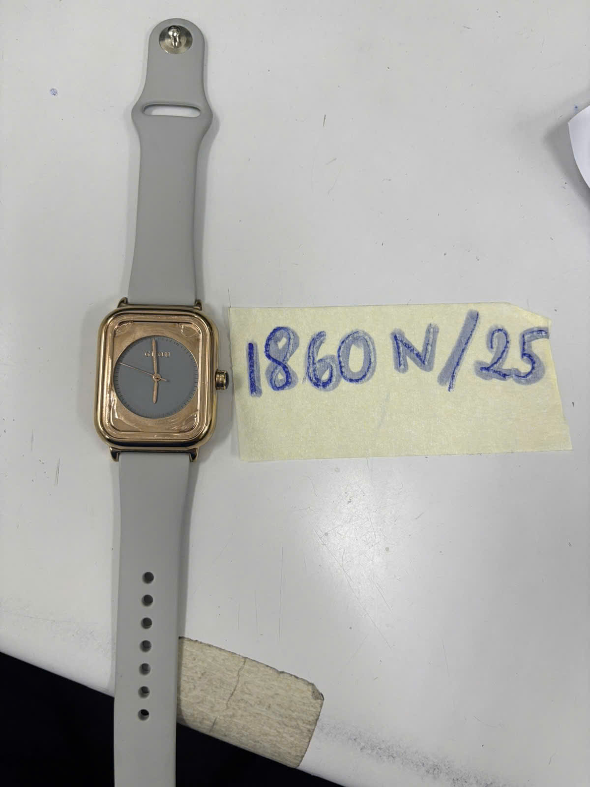 Ngày tiếp nhận: 17/10/2025 Mã hồ sơ: 1867N2025A Mô tả: 01 đồng hồ thông minh "Apple Watch SE" viền hồng, dây đeo kim loại màu bạc. |
