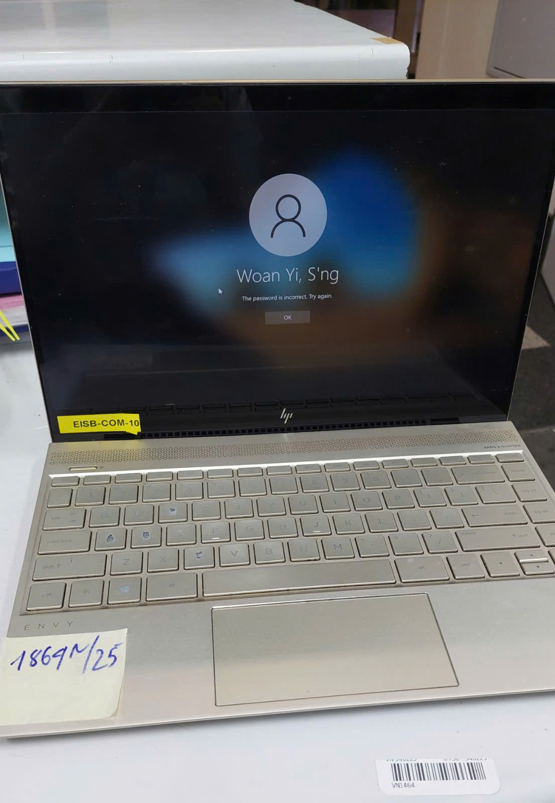 Ngày tiếp nhận: 17/10/2025 Mã hồ sơ: 1870N2025D Mô tả: 01 laptop màu bạc có chữ "HP" S/N: CND2020ZBW. |