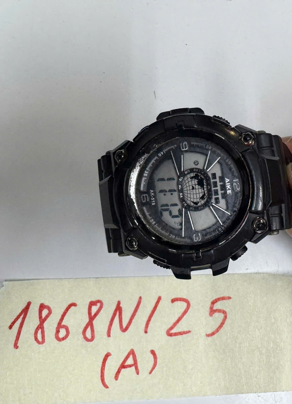 Ngày tiếp nhận: 17/10/2025 Mã hồ sơ: 1868N2025A Mô tả: 01 đồng hồ điện tử mặt hình tròn màu đen có chữ "AIKE", dây đeo cao su màu đen. |