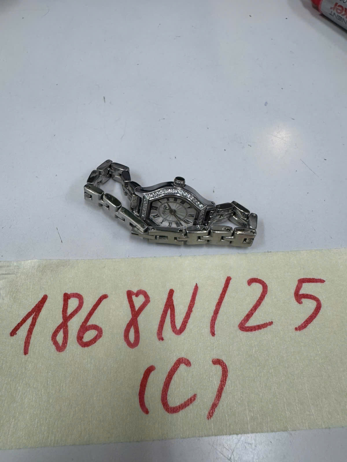 Ngày tiếp nhận: 17/10/2025 Mã hồ sơ: 1868N2025C Mô tả: 01 đồng hồ mặt hình oval màu trắng có chữ "JULIUS", dây đeo kim loại màu trắng. |
