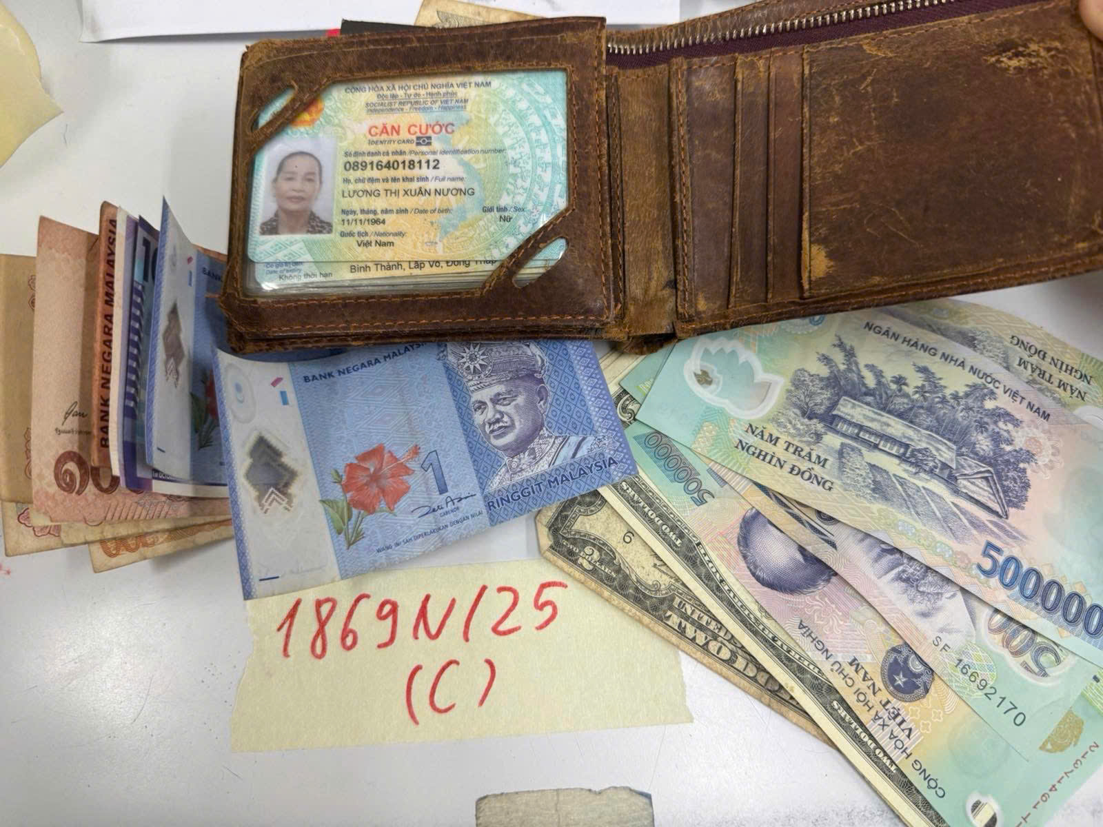 Ngày tiếp nhận: 16/10/2025 Mã hồ sơ: 1865N2025 Mô tả: 01 ví nam màu đen có 55000 won Hàn Quốc, 02 usd, 42000 VND và 02 thẻ ngân hàng mang tên JEA NAM SONG. |