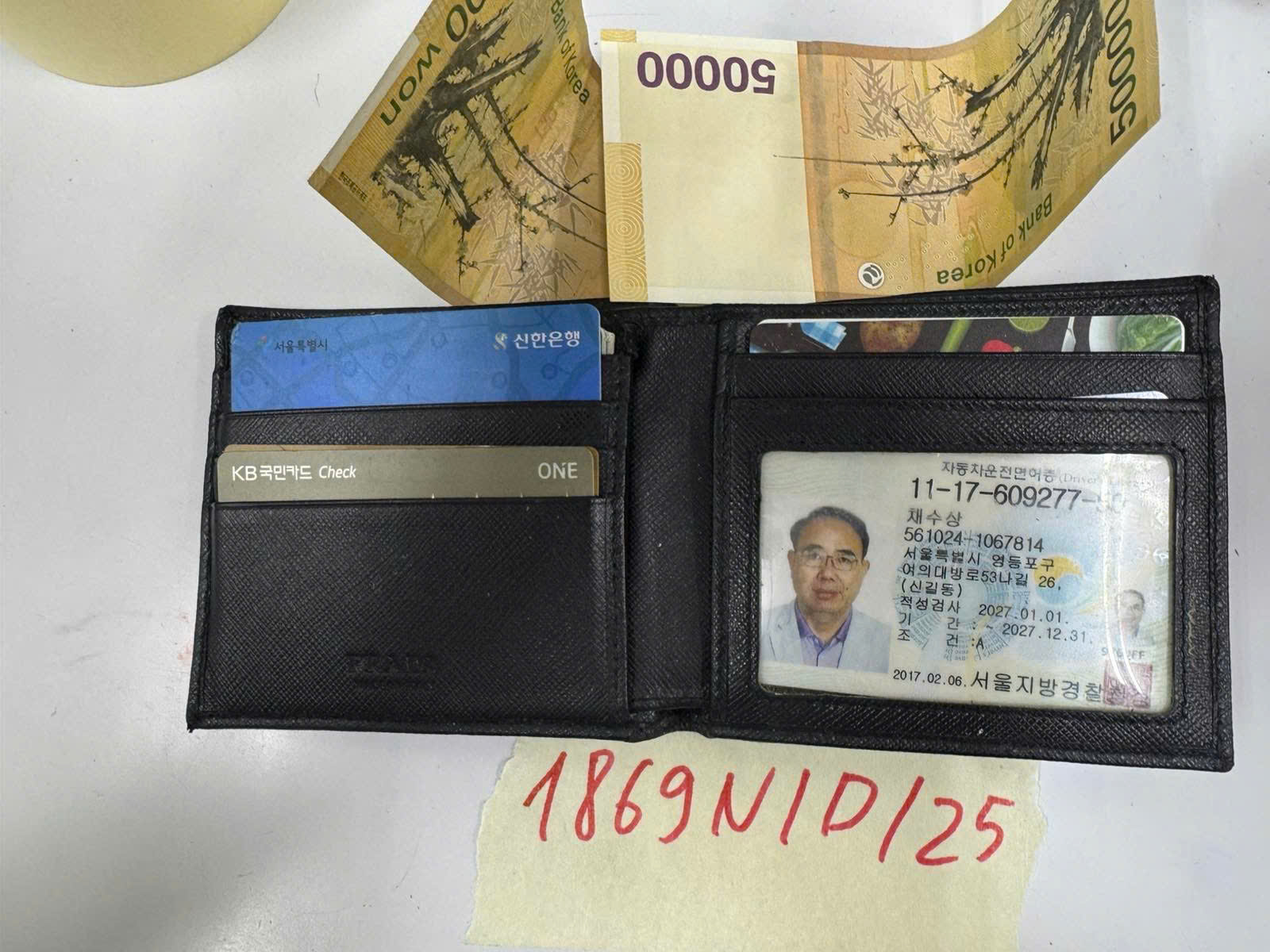 Ngày tiếp nhận: 17/10/2025 Mã hồ sơ: 1869N2025D Mô tả: 01 bóp da "PRADA" màu đen có 100.000 tiền Hàn cùng thẻ các loại mang tên SOO SANG CHAI. |