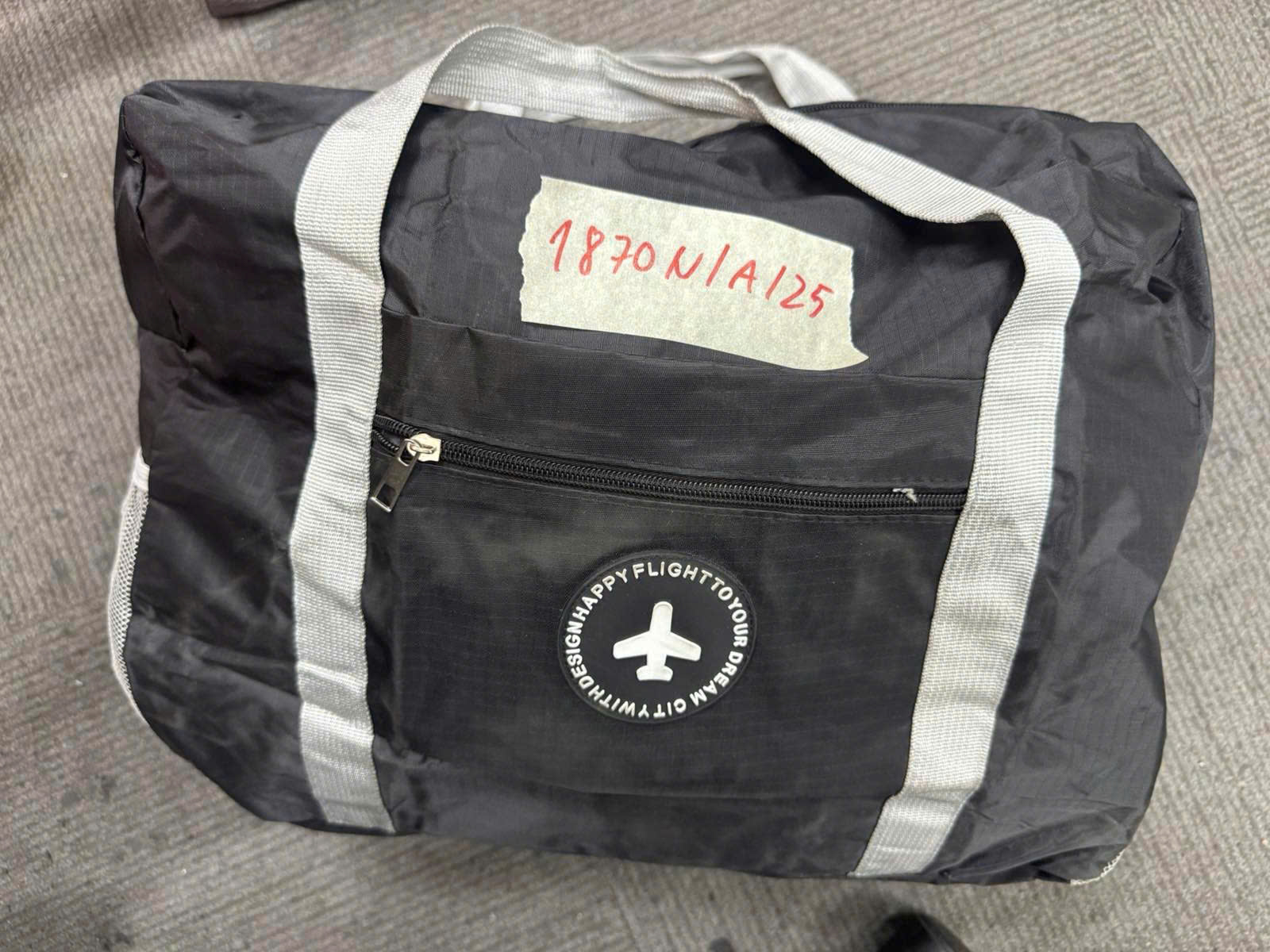 Ngày tiếp nhận: 17/10/2025 Mã hồ sơ: 1870N2025A Mô tả: 01 túi xách màu đen có chữ HAPPY FLIGHT TO YOUR DREAM CITY WITH DESIGN bên trong chứa một số quần áo và vật dụng cá nhân đã qua sử dụng. |