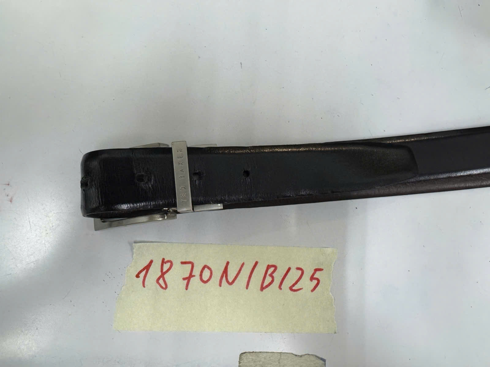 Ngày tiếp nhận: 17/10/2025 Mã hồ sơ: 1870N2025B Mô tả: 01 thắt lưng màu đen đầu kim loại màu bạc có chữ "TED BAKER". |