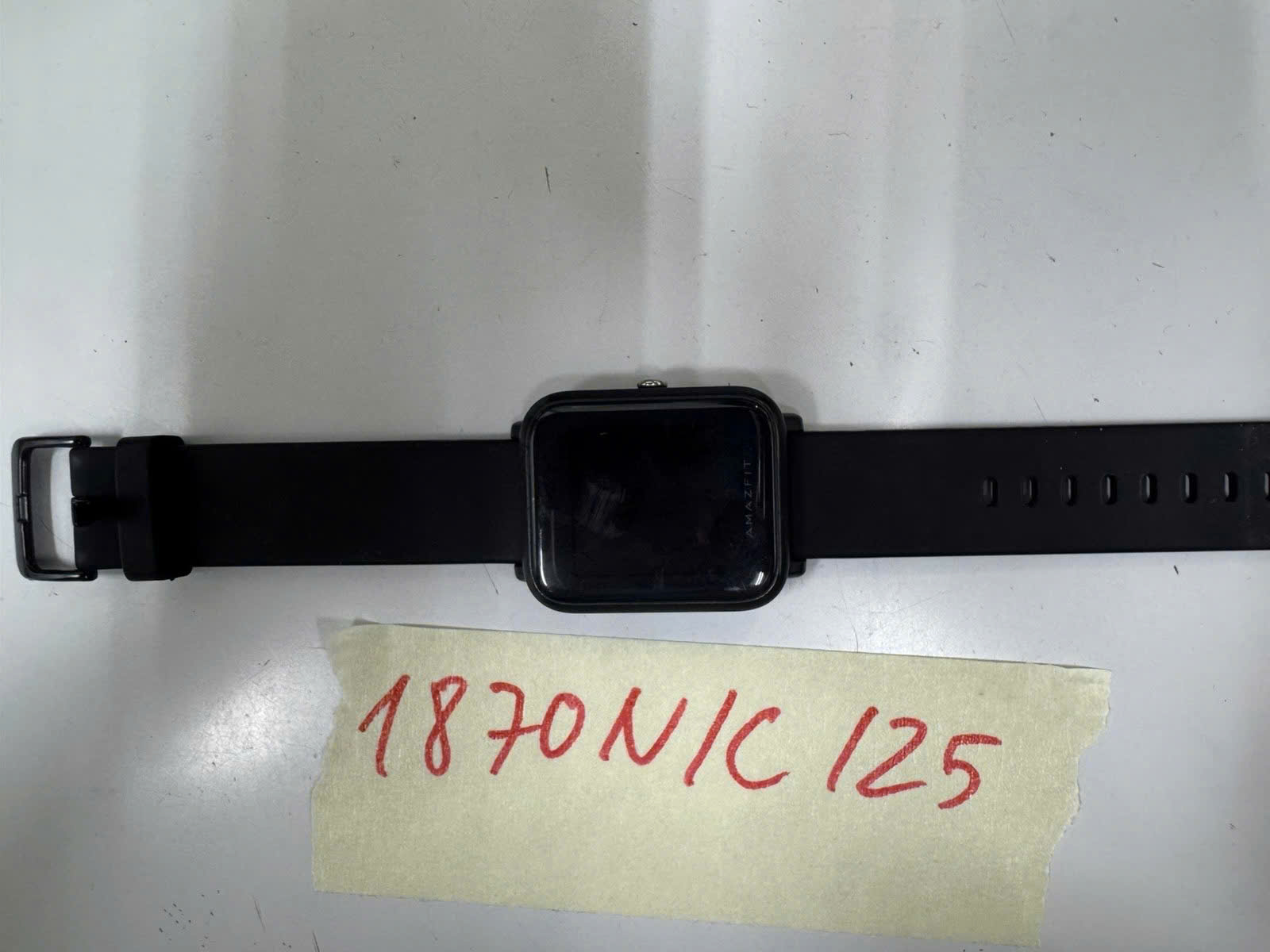 Ngày tiếp nhận: 17/10/2025 Mã hồ sơ: 1870N2025C Mô tả: 01 đồng hồ thông minh mặt hình chữ nhật màu đen có chữ "AMAZFIT", dây nhựa màu đen. |