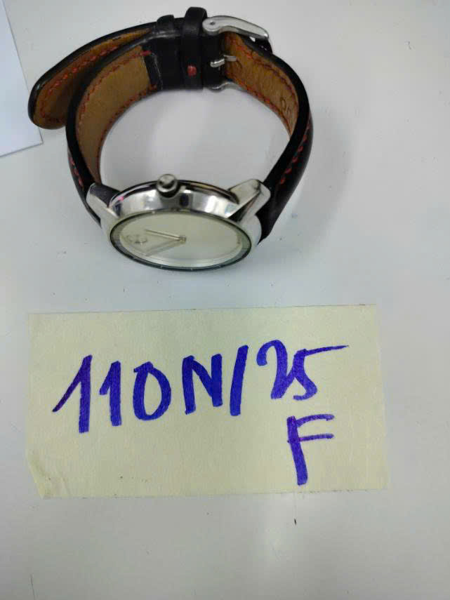 Ngày tiếp nhận: 16/01/2025 Mã hồ sơ: 110N2025F Mô tả: 01 Đồng hồ mặt tròn màu trắng bên trong có chữ "MOVADO". |