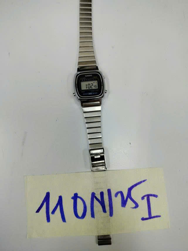 Ngày tiếp nhận: 16/01/2025 Mã hồ sơ: 110N2025I Mô tả: 01 Đồng hồ kim loại màu trắng có chữ "CASIO". |