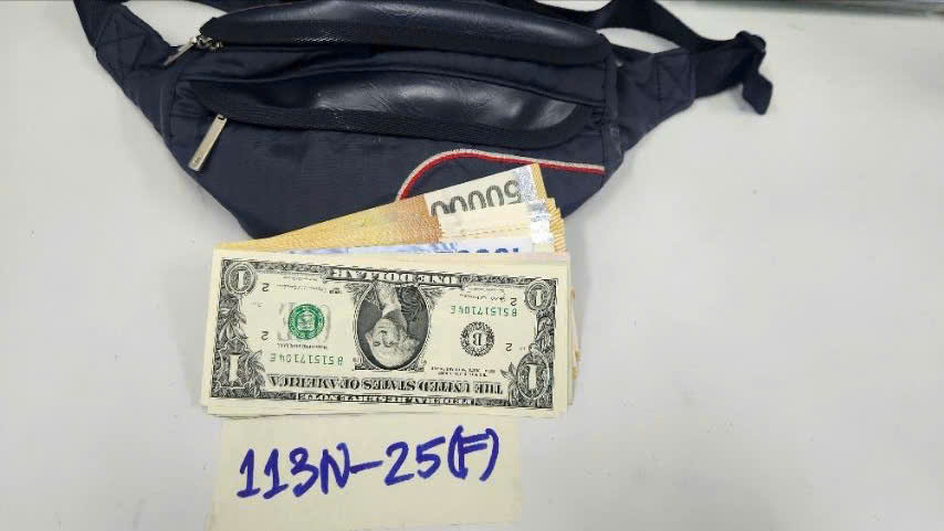 Ngày tiếp nhận: 17/01/2025 Mã hồ sơ: 113N2025F Mô tả: 01 túi nhỏ màu xanh có chữ Fila, bên trong có 811000 (tám trăm mười một nghìn) won Hàn quốc, 73 (bảy mươi ba) đô la Mỹ, 01 (một) củ sạc kèm dây sạc màu trắng. |