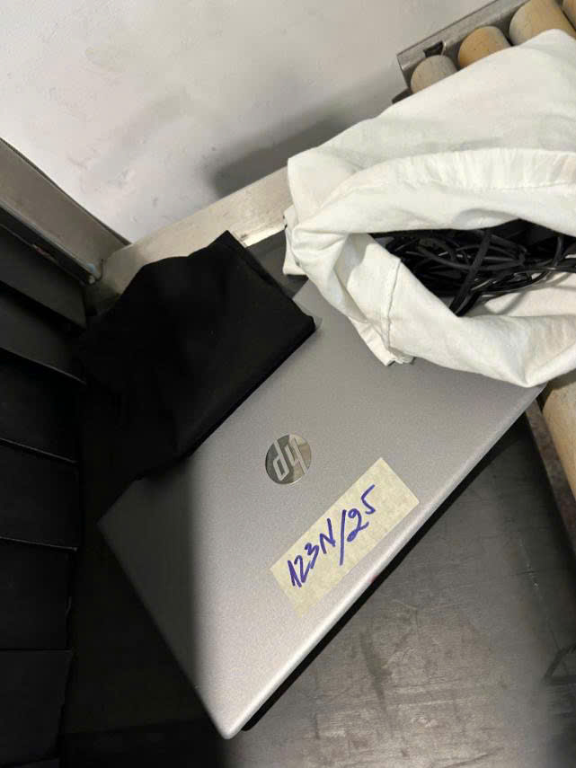 Ngày tiếp nhận: 17/01/2025 Mã hồ sơ: 123N2025 Mô tả: 01 máy tính xách tay màu xám in logo chữ "HP" (PAVILION, model 7255NGW để trong túi vải màu đen, 01 túi vải màu trắng, bên trong có; 01 pin màu đen có logo chữ "HASSELBLAD", 01 pin màu đen có logo chữ "FUJIFILM", 03 bộ sạc màu đen, 01 chuyên nguồn màu trắng, 01 chuột máy tính màu đen, 01 đồng hồ bằng cao su màu đen có logo chữ "VYPER AIR", tất cả đồ bên trên đã qua sử dụng. |