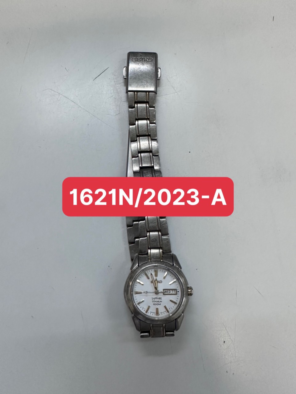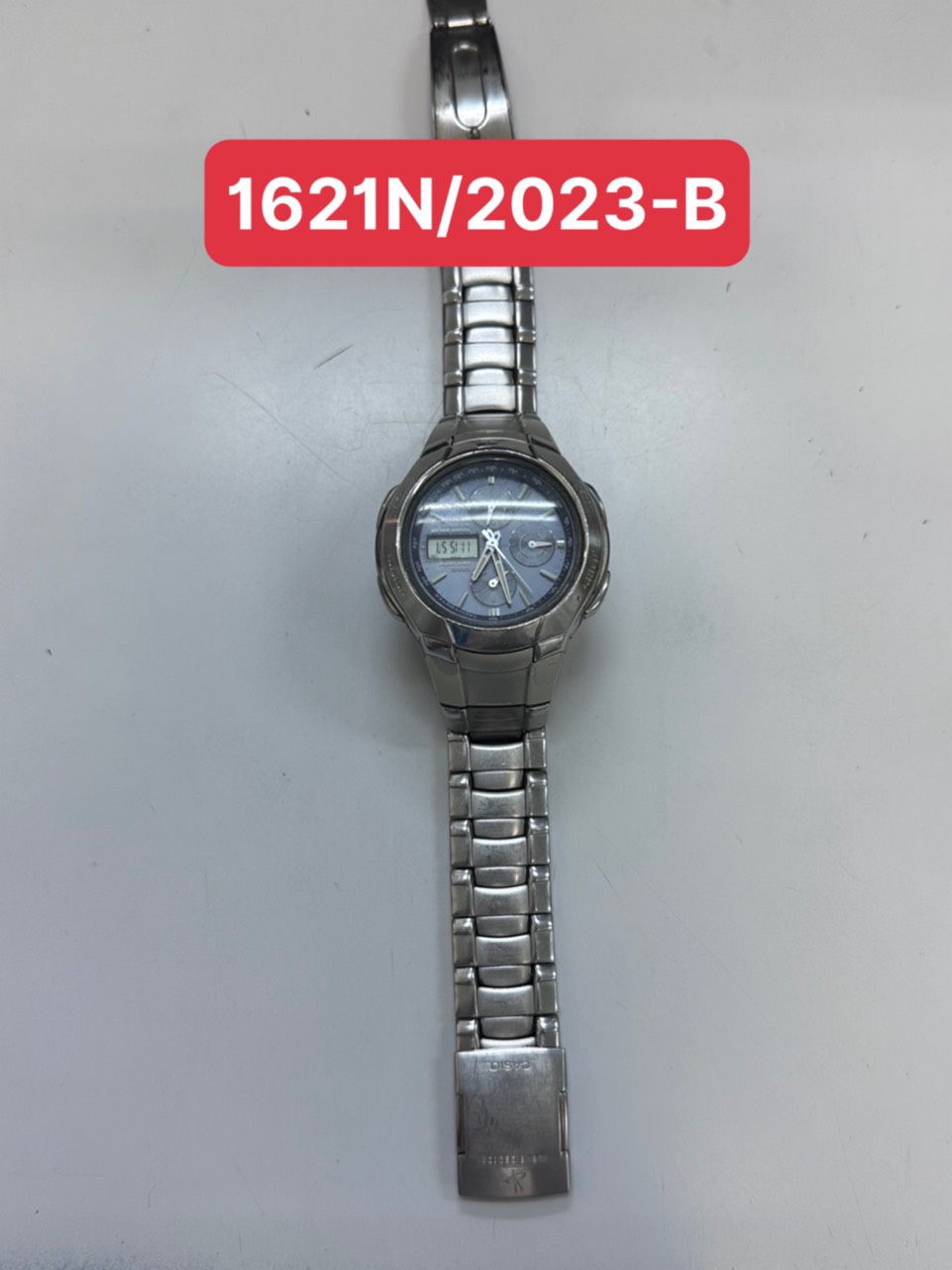 Ngày tiếp nhận: 21/11/2023 Mã hồ sơ: 1621N2023B Mô tả: 01 đồng hồ CASIO, dây kim loại màu bạc, mã số 202A265G. Vị trí: An ninh soi chiếu quốc tế |