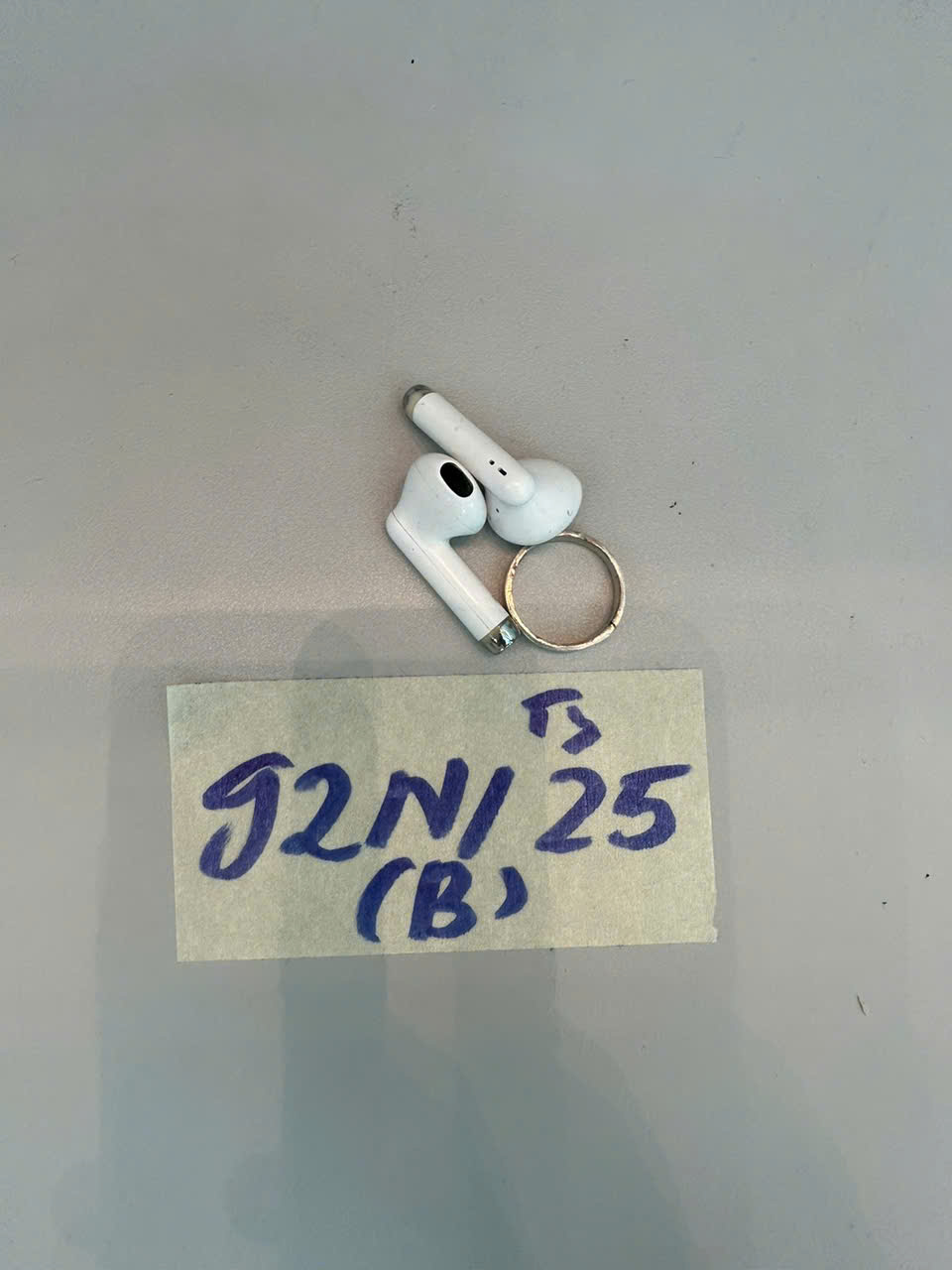 Ngày tiếp nhận: 16/11/2025 Mã hồ sơ: 92N2025B Mô tả: 02 tai nghe (trái và phải) màu trắng và 01 nhẫn kim loại màu trắng. |