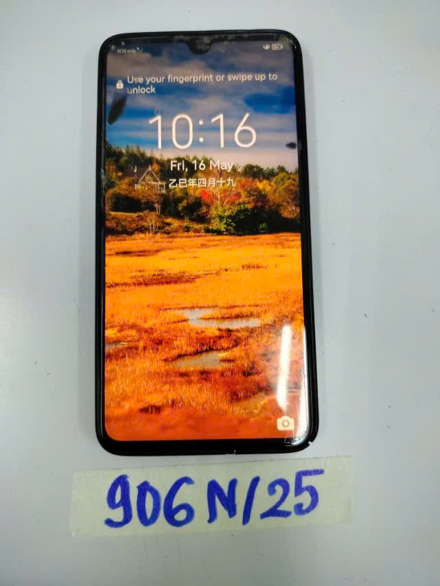 Ngày tiếp nhận: 16/5/2025 Mã hồ sơ: 906N2025 Mô tả: 01 điện thoại logo chữ HUAWEI mặt lưng màu xanh, model: HMA-L29, có ốp cao su màu đen. |
