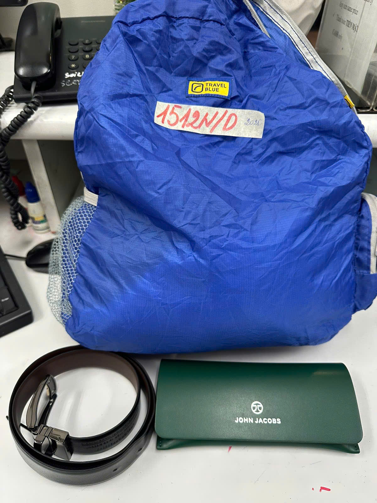 Ngày tiếp nhận: 16/8/2025 Mã hồ sơ: 1512N2025D Mô tả: 01 balo vải dù màu xanh dương có chữ TRAVEL BLUE bên trong: quần áo, 01 kính mát màu xanh lá có chữ JOHN JACOBS, 01 thắt lưng da màu đen có chữ LPBLGRGFF20240, 01 đôi dép màu đen có chữ NIKE, 01 đôi giày thể thao có chữ CONVERSE. |