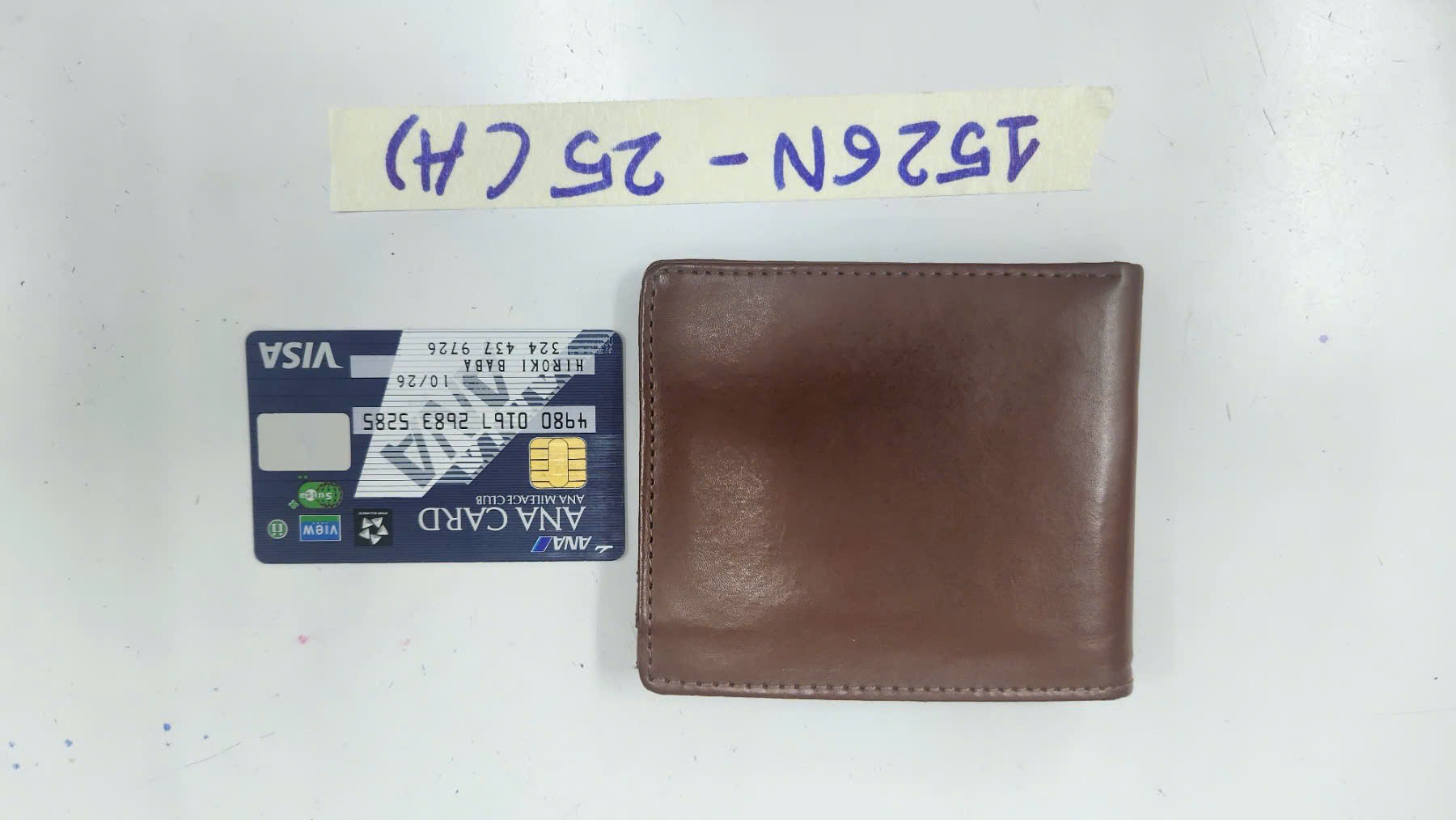 Ngày tiếp nhận: 17/8/2025 Mã hồ sơ: 1526N2025A Mô tả: 01 ví da nam màu nâu mang tên HINOKOBABA. |