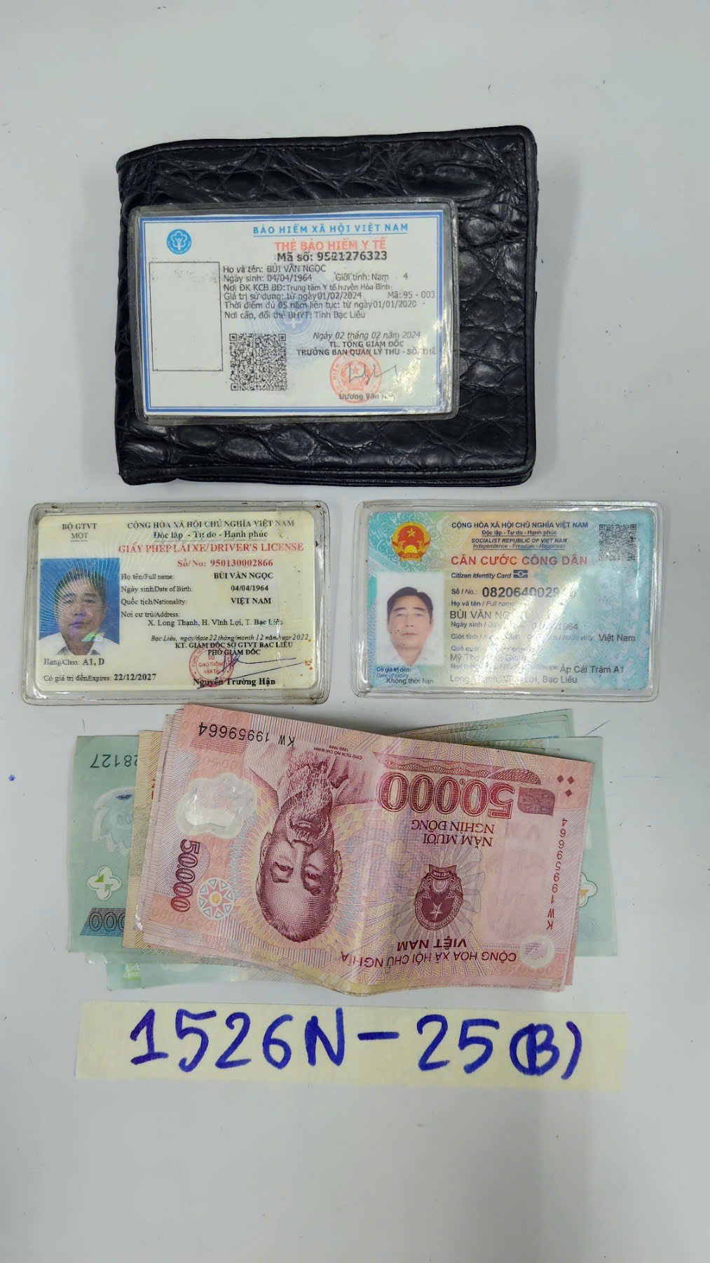 Ngày tiếp nhận: 17/8/2025 Mã hồ sơ: 1526N2025B Mô tả: 01 ví da nam màu đen có 3.800.000vnđ, giấy tờ BÙI VĂN NGỌC. |