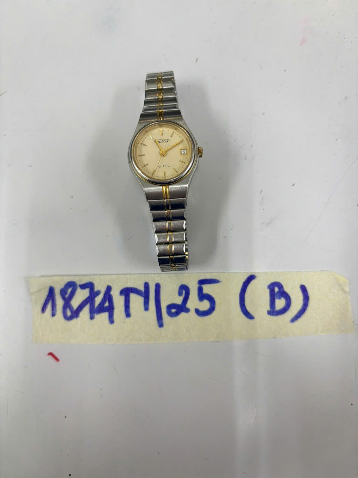 Ngày tiếp nhận: 18/10/2025 Mã hồ sơ: 1874N2025B Mô tả: 01 đồng hồ kim loại màu bạc mặt màu vàng mang nhãn hiệu "AUREOLE" kèm dây đeo bằng kim loại màu bạc. |