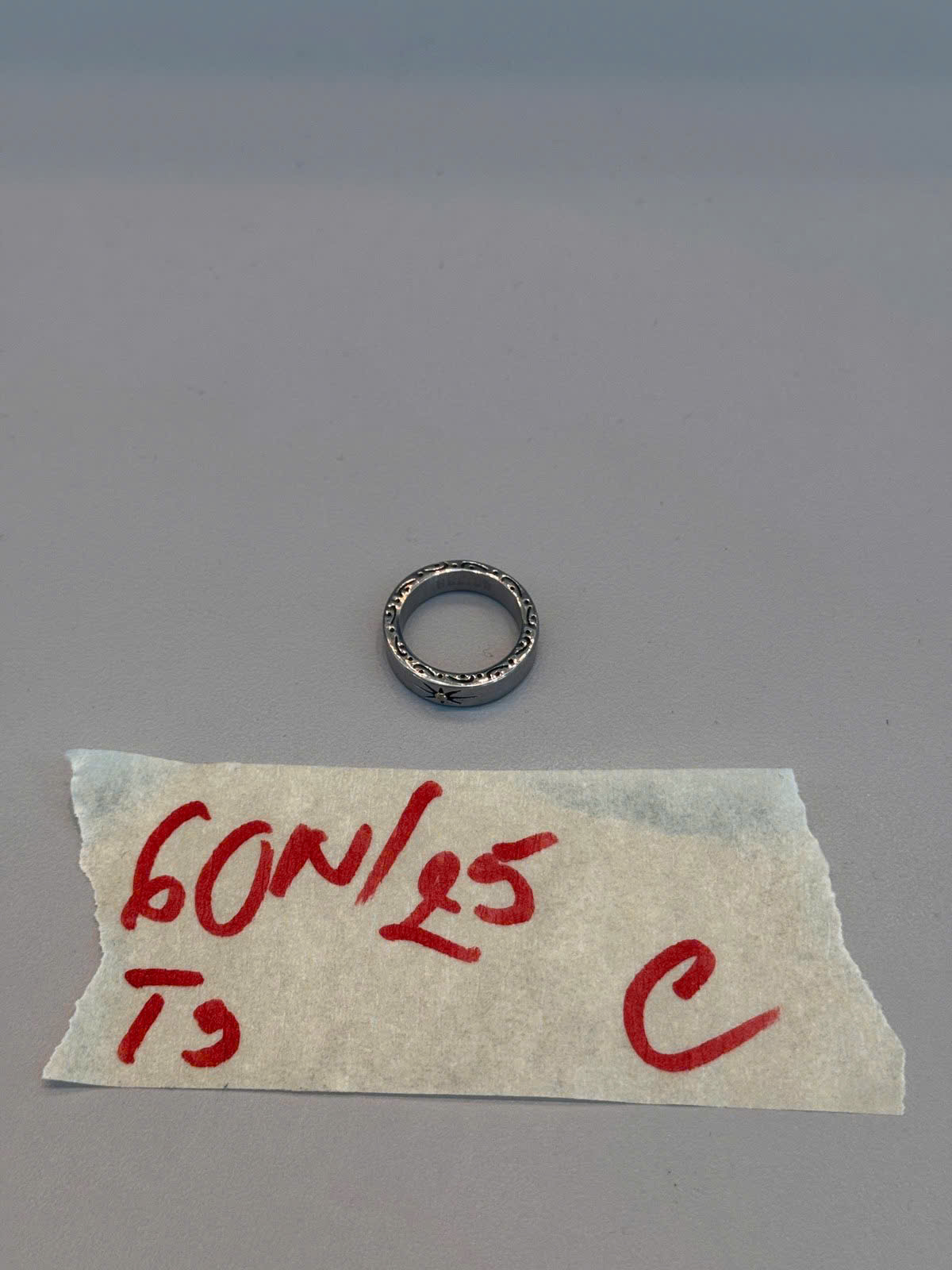 Ngày tiếp nhận: 17/10/2025 Mã hồ sơ: 60N2025C Mô tả: 01 nhẫn màu bạc bên trong có chữ "HELIOS". |