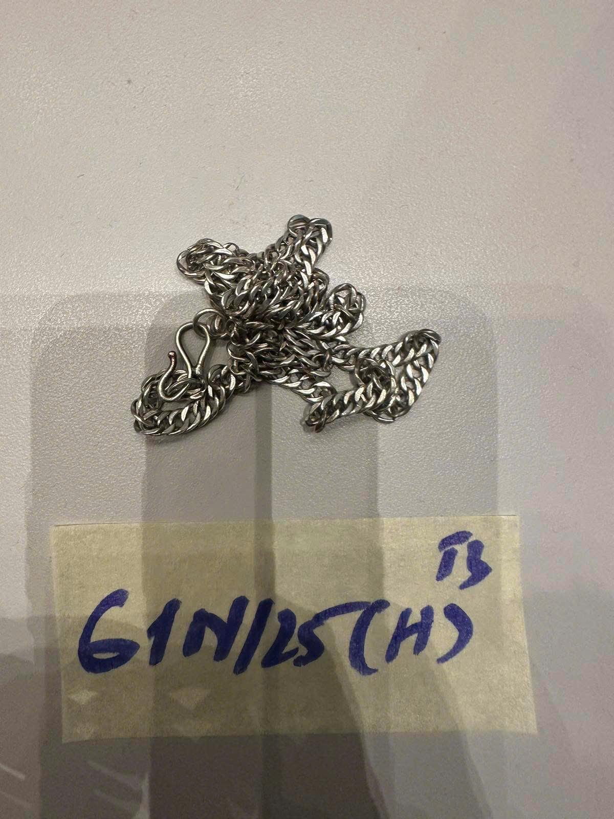 Ngày tiếp nhận: 18/10/2025 Mã hồ sơ: 61N2025H Mô tả: 01 dây chuyền kim loại màu trắng bạc. |
