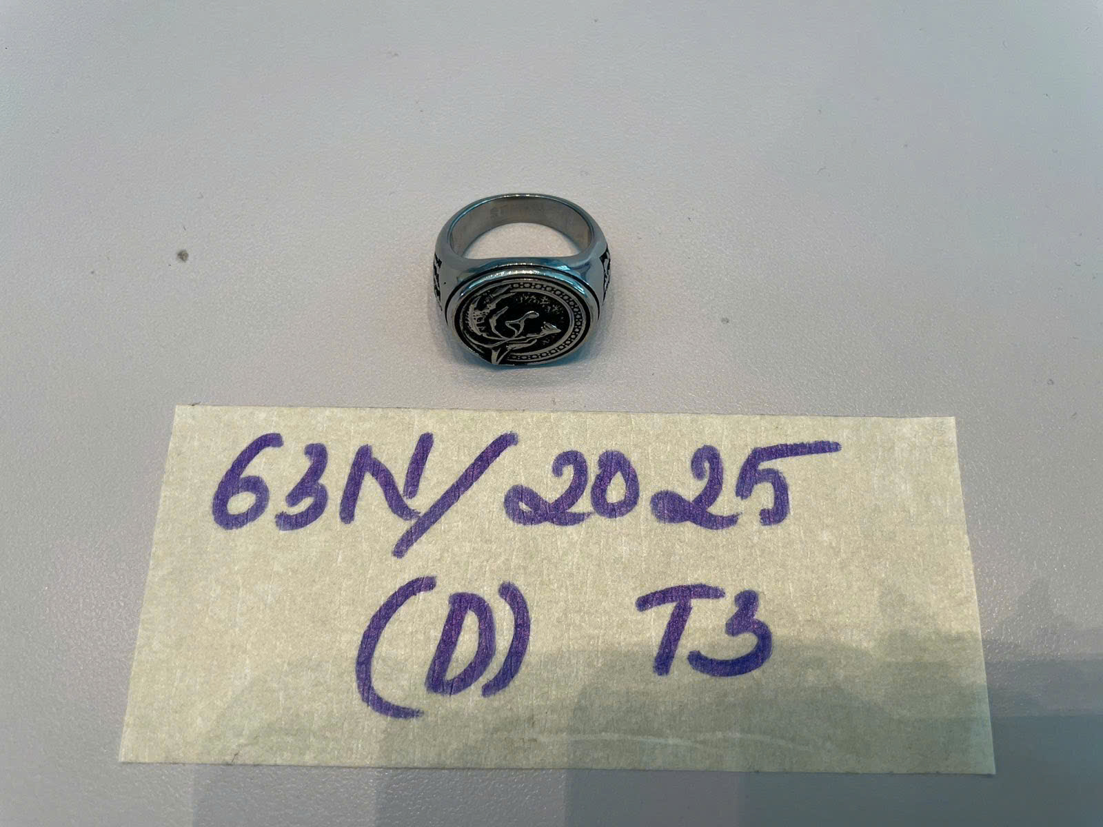 Ngày tiếp nhận: 19/10/2025 Mã hồ sơ: 63N2025D Mô tả: 01 nhẫn màu bạc. |