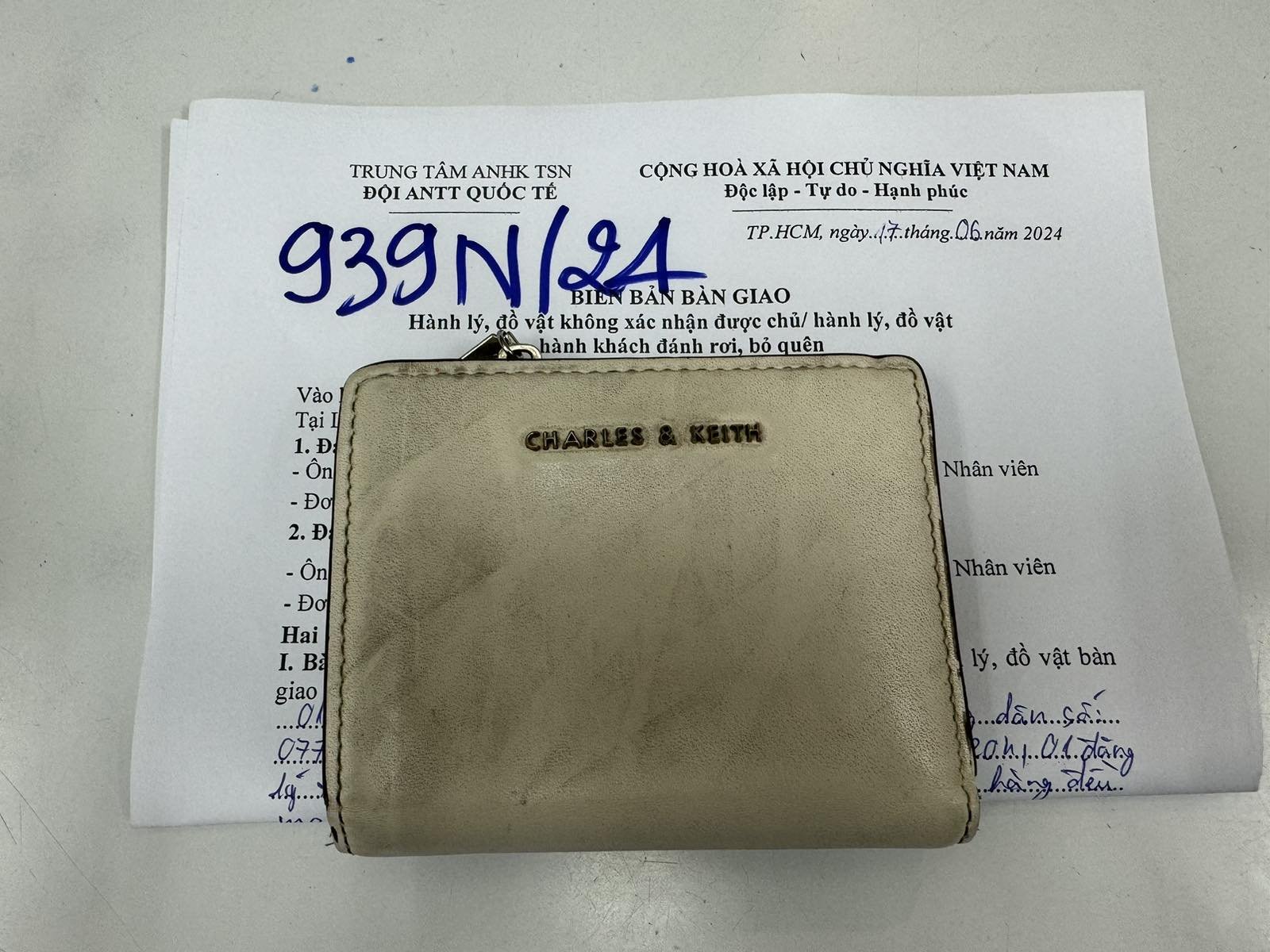 Ngày tiếp nhận: 17/6/2024 Mã hồ sơ: 939N2024 Mô tả: 01 ví nam vàng bên trong chứa 01 CCCD số 077301002996, 01 giấy phép lái xe số 771206003204, 01 đăng ký xe moto biển số 72C3-63358, 02 thẻ ngân hàng đều mang tên TRẦN LÊ HÀ VỸ. |