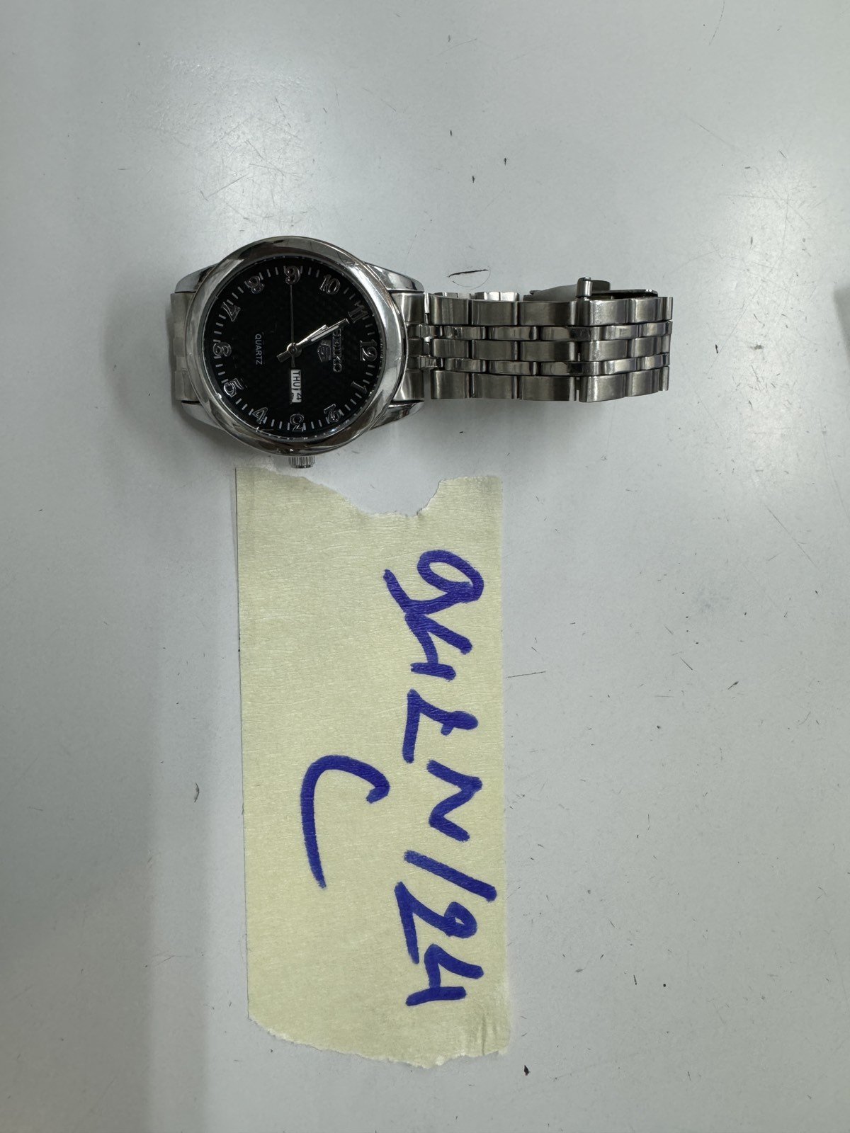 Ngày tiếp nhận: 18/6/2024 Mã hồ sơ: 942N2024C Mô tả: 01 đồng hồ đeo tay bằng kim loại, mặt đồng hồ viền kim loại hình tròn có logo chữ SEIKO QUARTZ. |